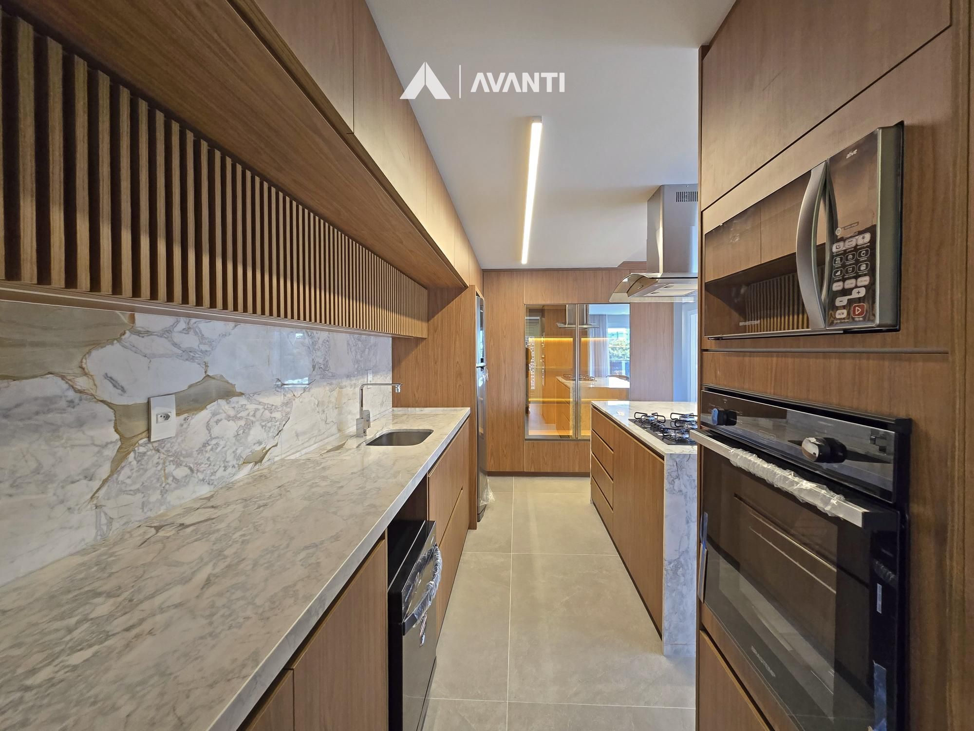 Cozinha integrada ao estar e jantar, ampla varanda gourmet com vista panorâmica, banhos com ventilação e iluminação natural, lavanderia com acesso à sacada, excelente posição solar, norte/oeste.