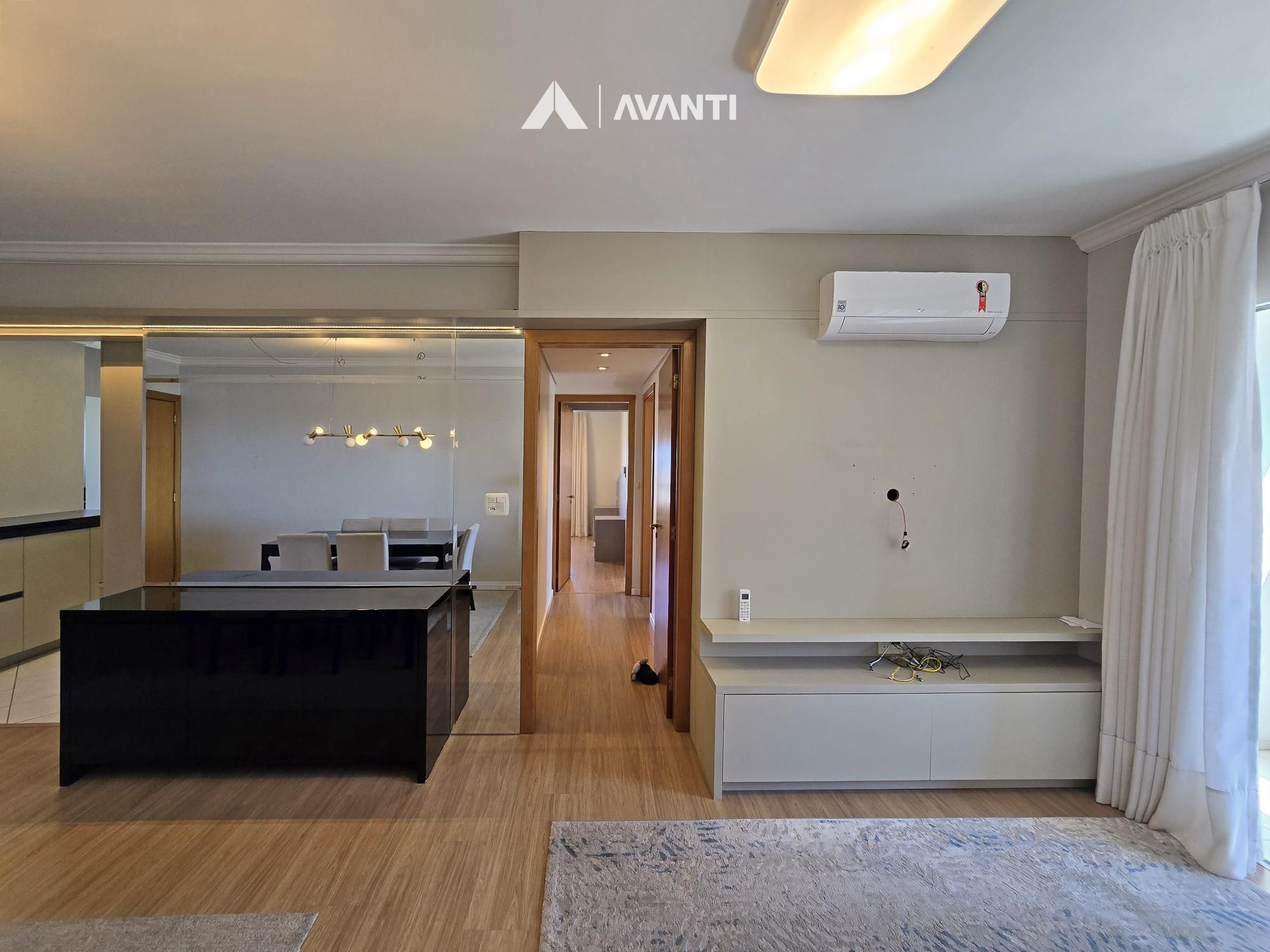 Imponente living em conceito aberto, sala de jantar, sala de estar, sacada com fechamento reiki, cozinha, área de serviço e banheiro social.