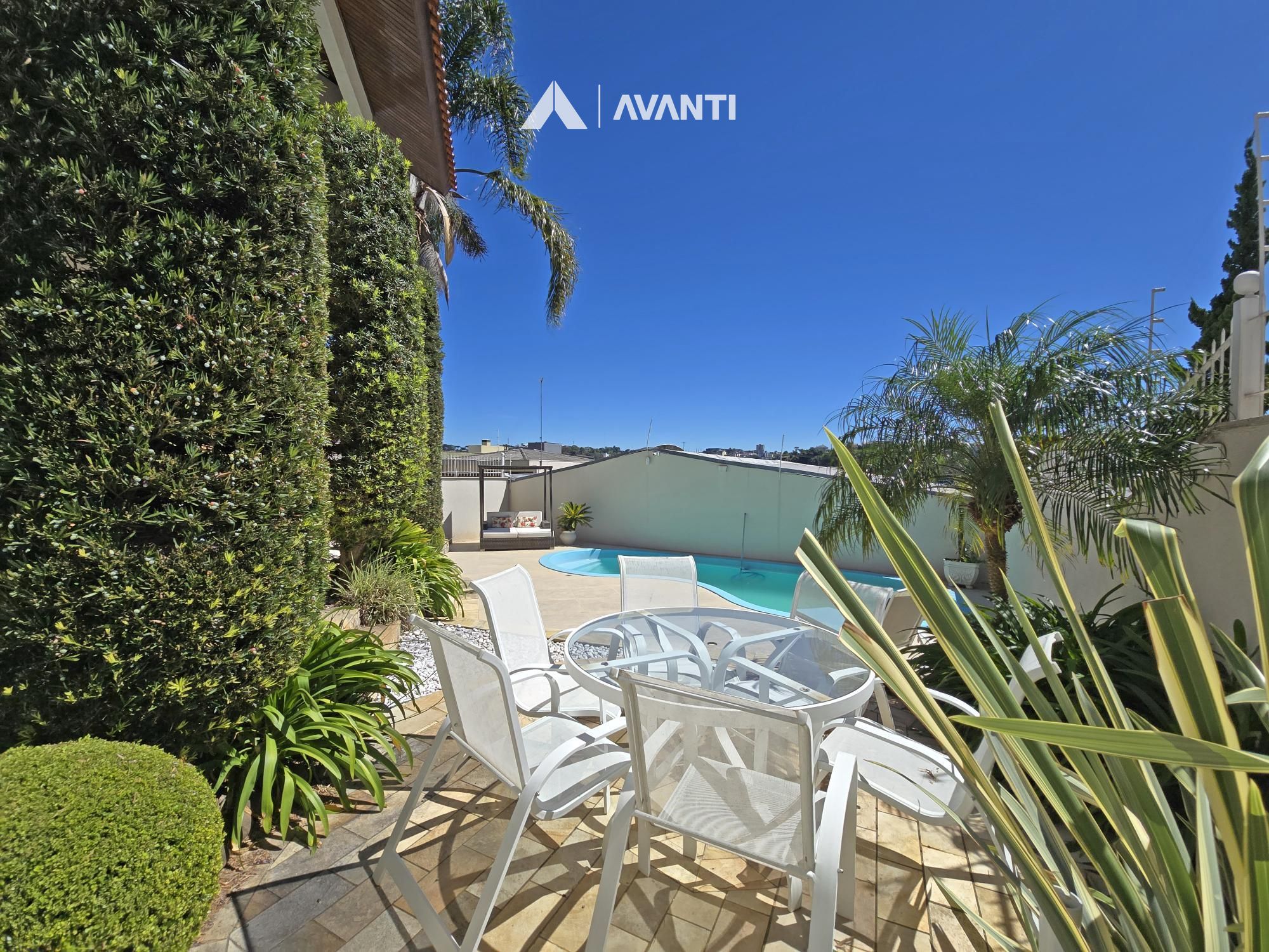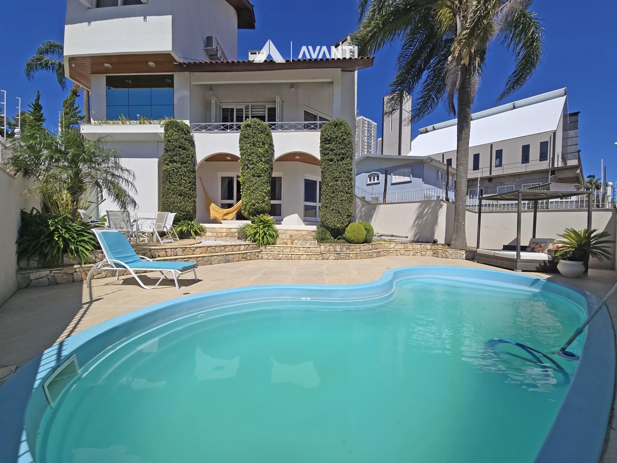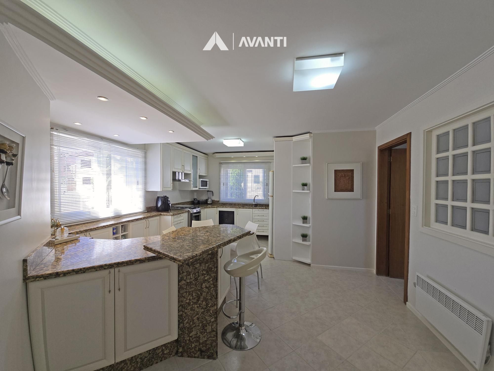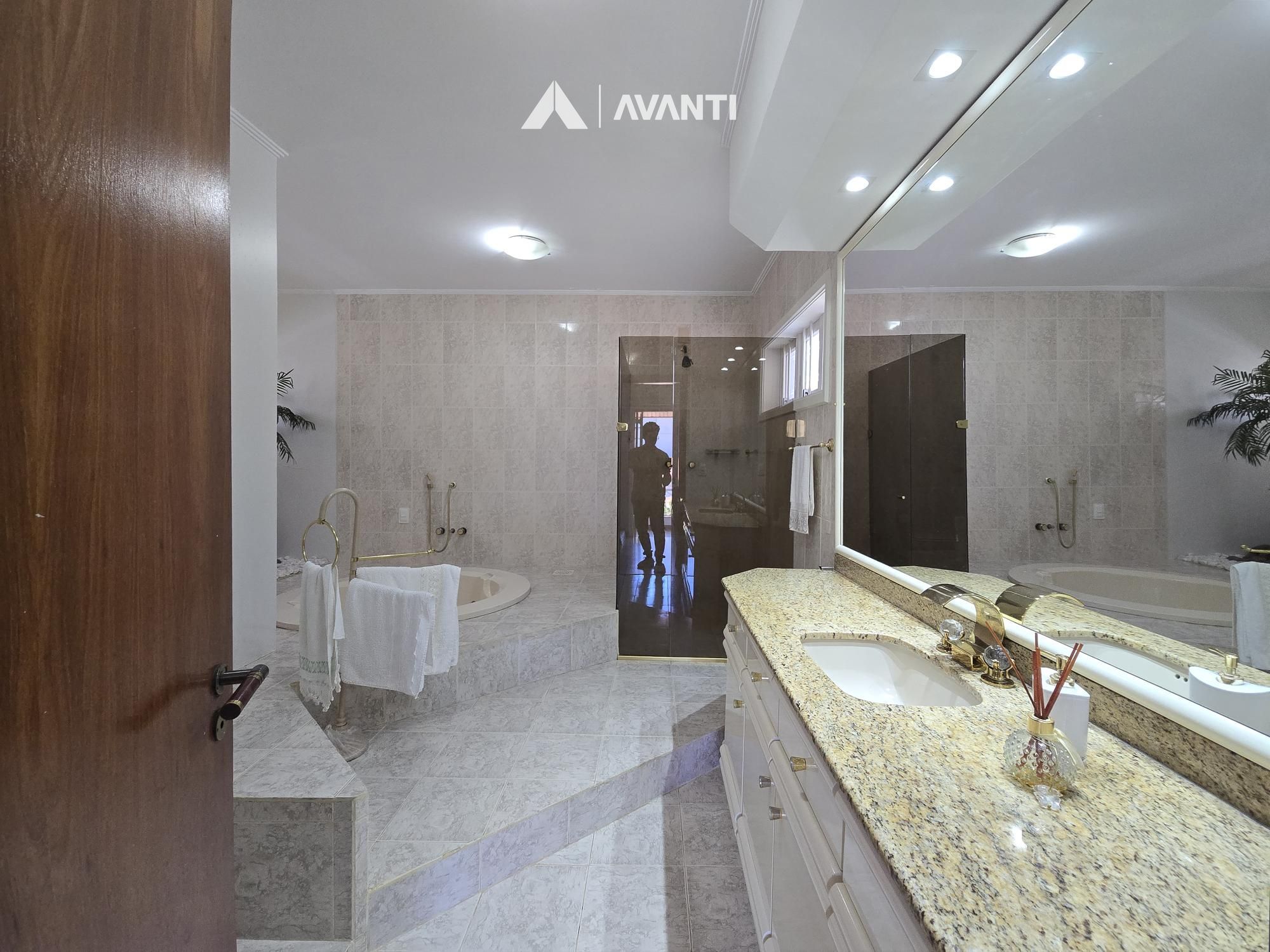 Edificada em terreno de 360m², dispõe de 380m² privativos, hall de entrada com lavabo, amplo living com pé direito duplo, sala de estar 3 ambientes com lareira e sacada, sala de jantar, mezanino com sala TV, cozinha copa, área de serviço com dependência, banheiro auxiliar e sacada terraço auxiliar.