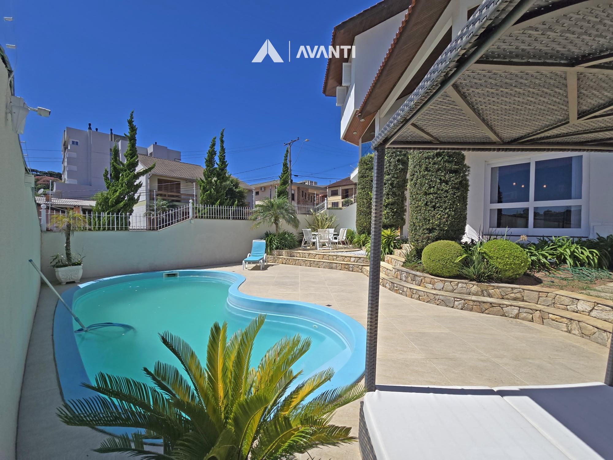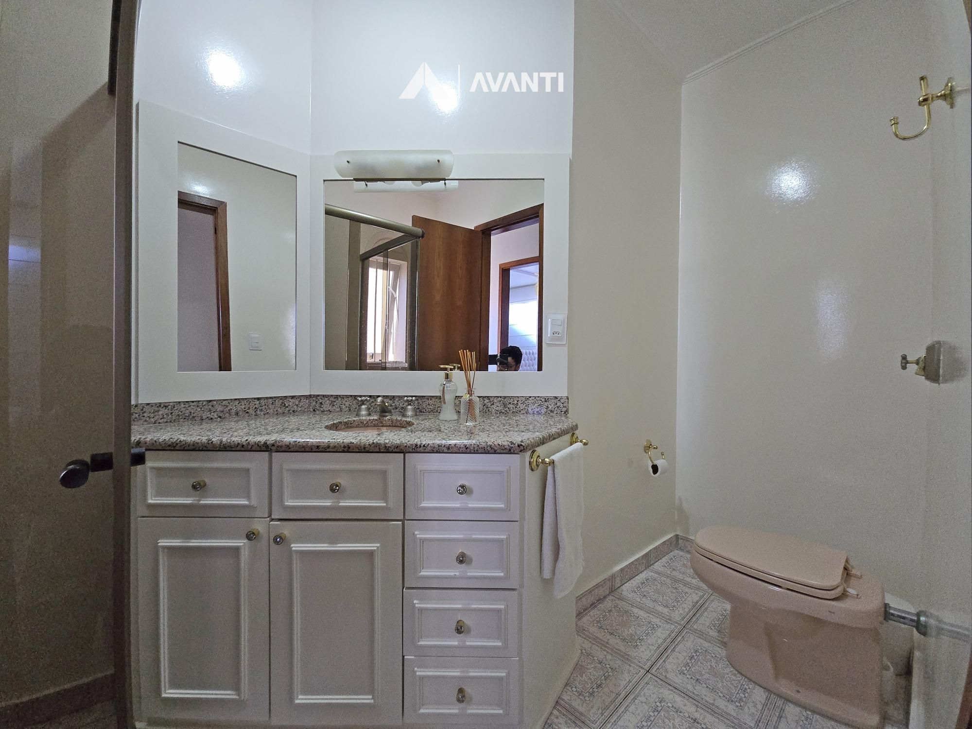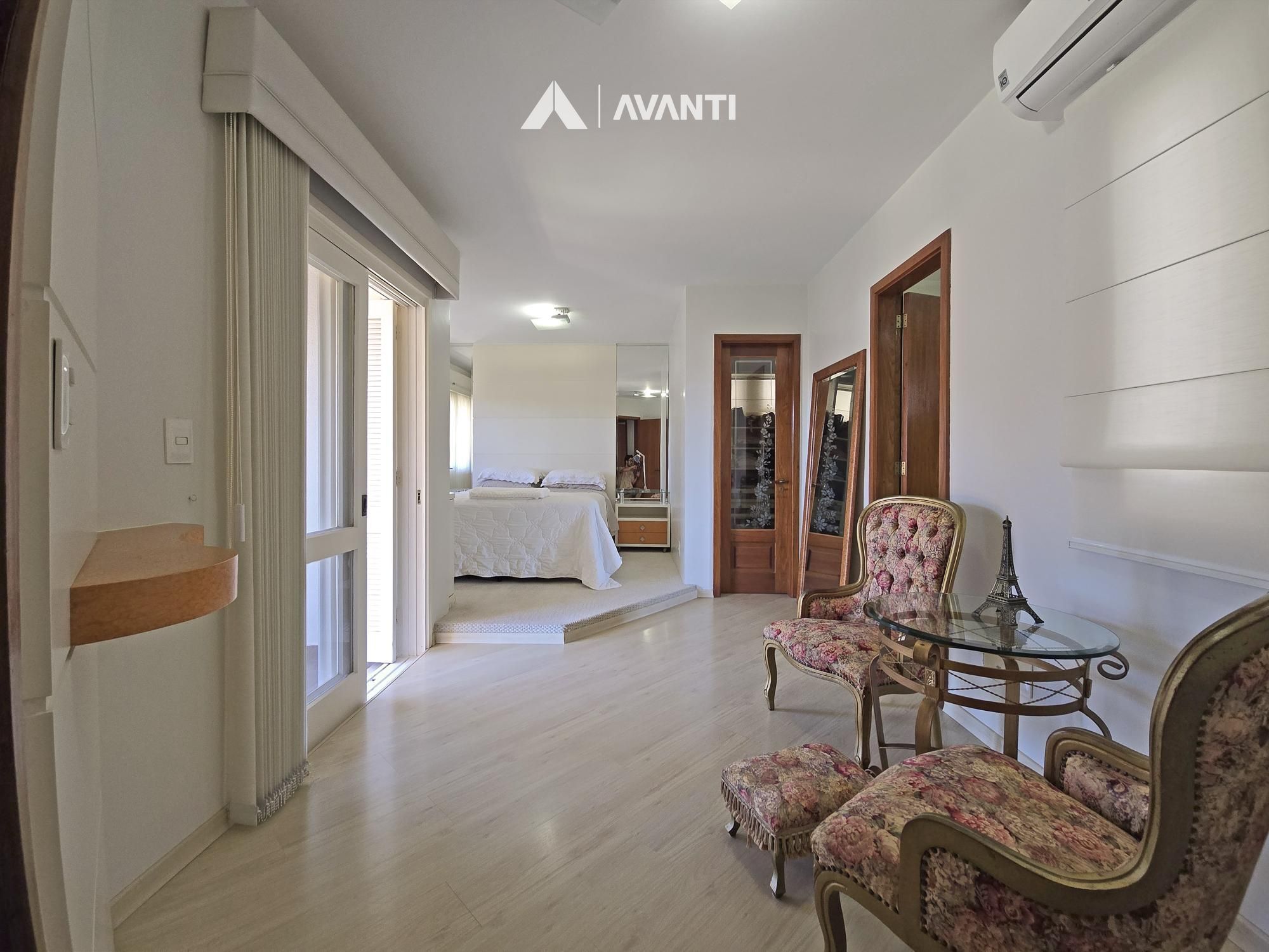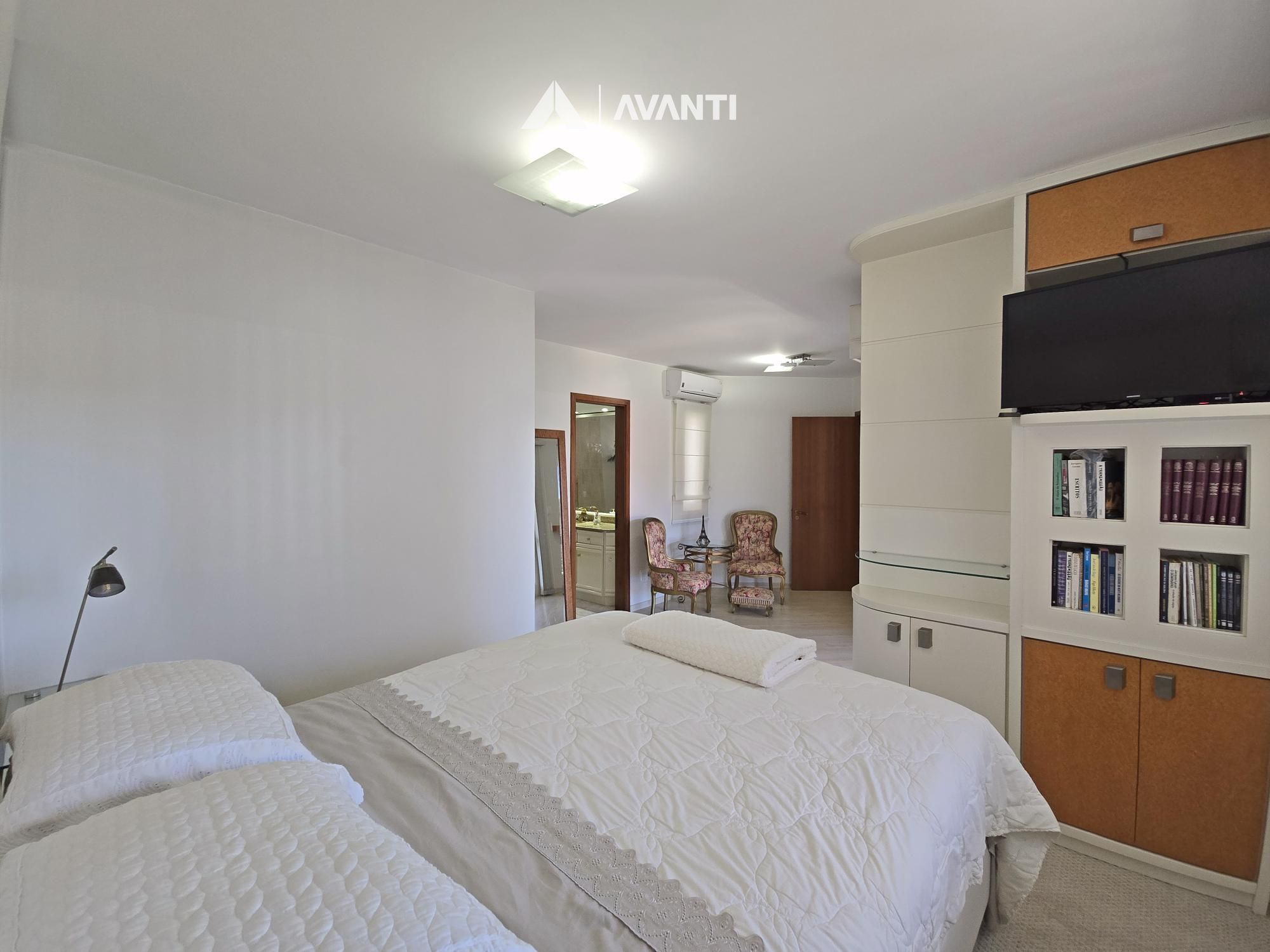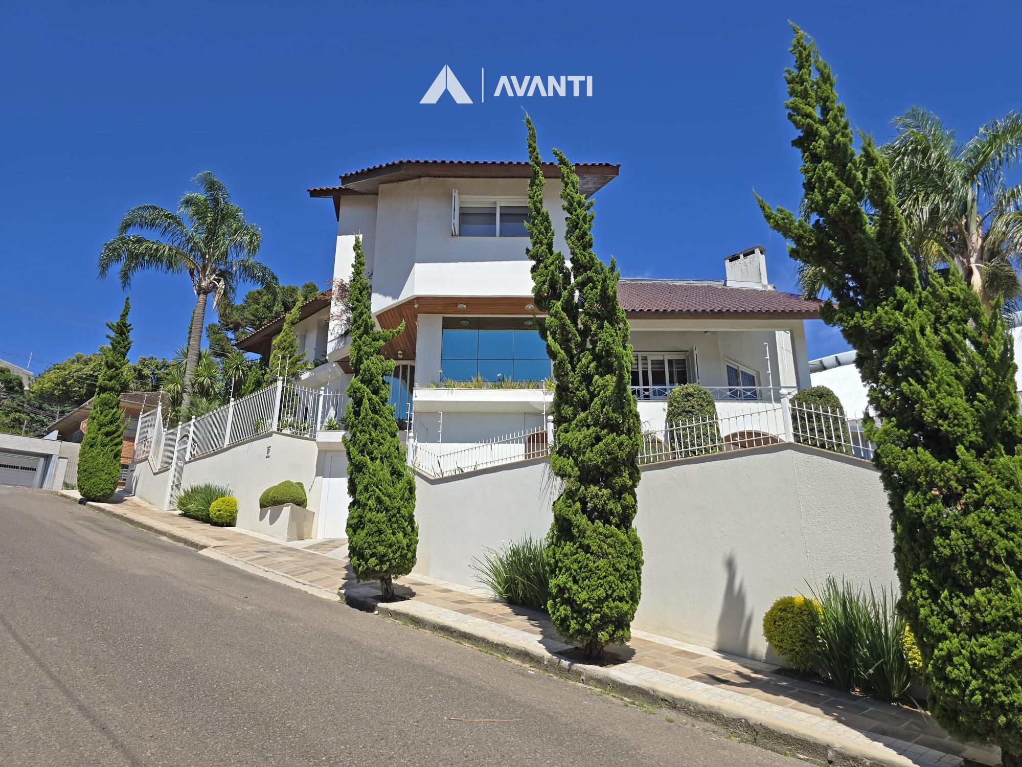 Edificada em terreno de 360m², dispõe de 380m² privativos, hall de entrada com lavabo, amplo living com pé direito duplo, sala de estar 3 ambientes com lareira e sacada, sala de jantar, mezanino com sala TV, cozinha copa, área de serviço com dependência, banheiro auxiliar e sacada terraço auxiliar.