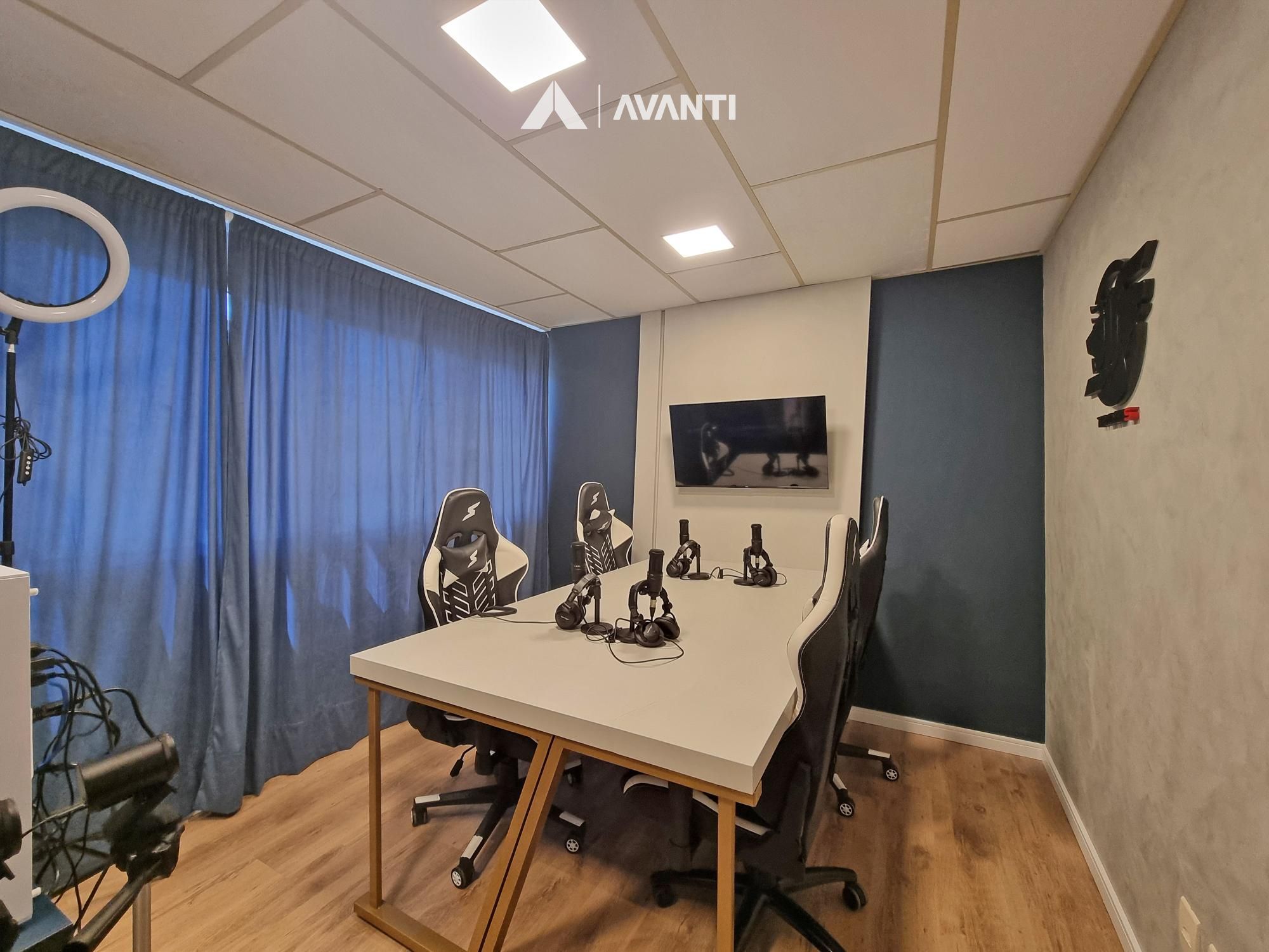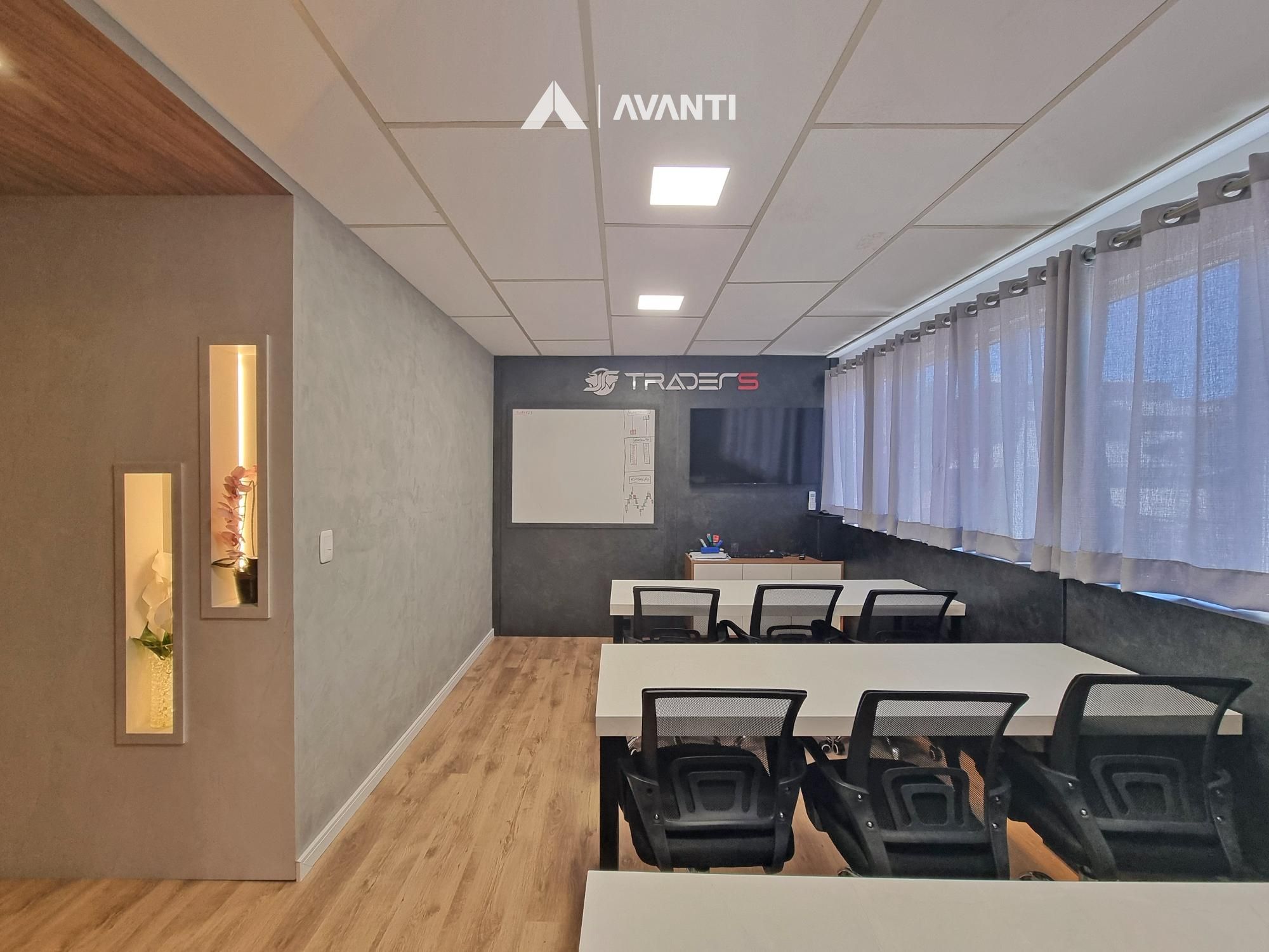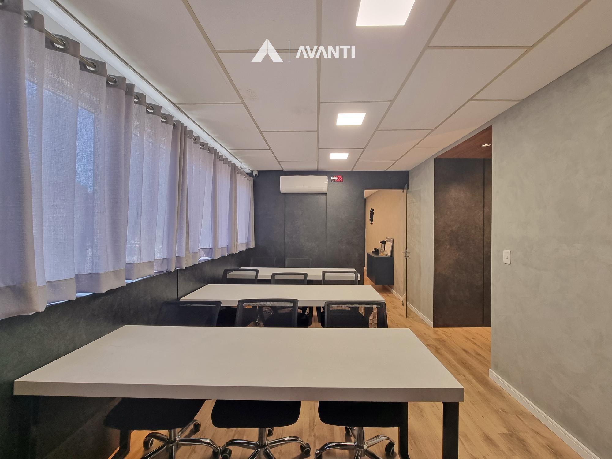 Com 61m² privativos. dispõe de recepção com lavabo, sala para 9 pessoas e escritório.