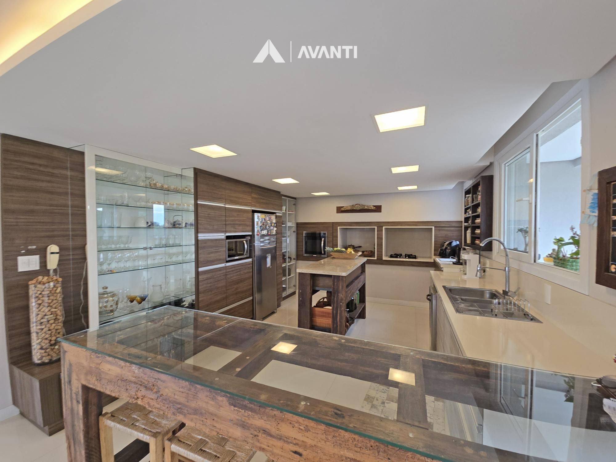 O living em conceito aberto integra sala de estar, sala de jantar e cozinha com churrasqueira, fluindo naturalmente para o espaço gourmet externo — ideal para receber seus amigos e familiares com aconchego e descontração.