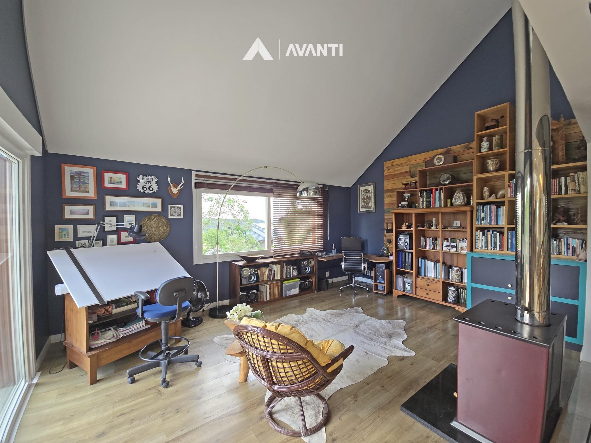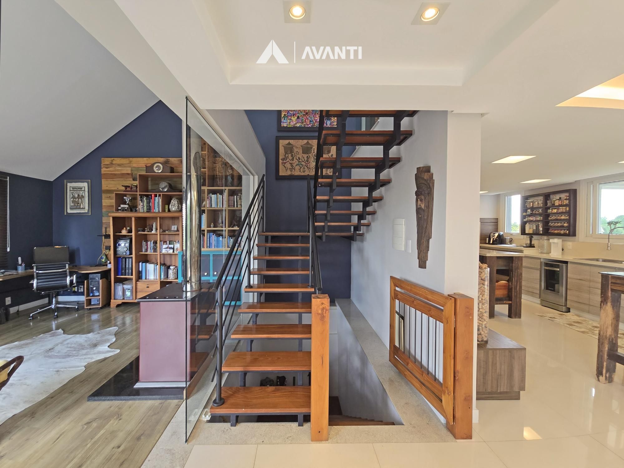Conta com 3 dormitórios, sendo 1 suíte, hall de entrada com pé-direito elevado, além de um ateliê acolhedor com lareira.