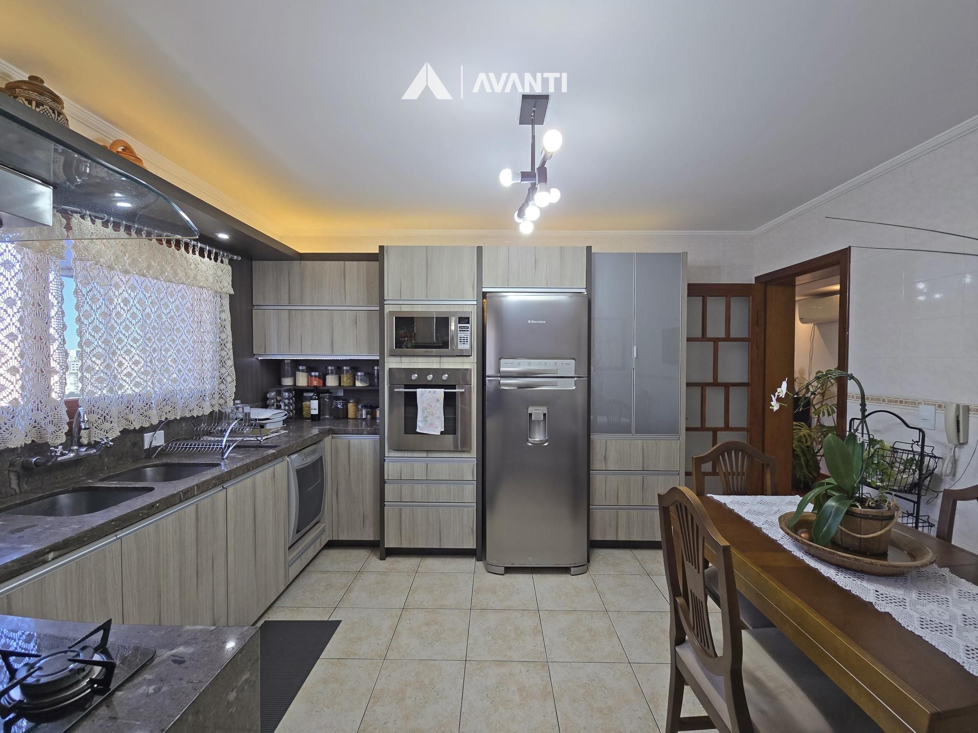Hall de entrada privativo, ampla sala de estar 2 ambientes, sacada fechada, cozinha copa, área de serviço com churrasqueira, despensa e banheiro social.