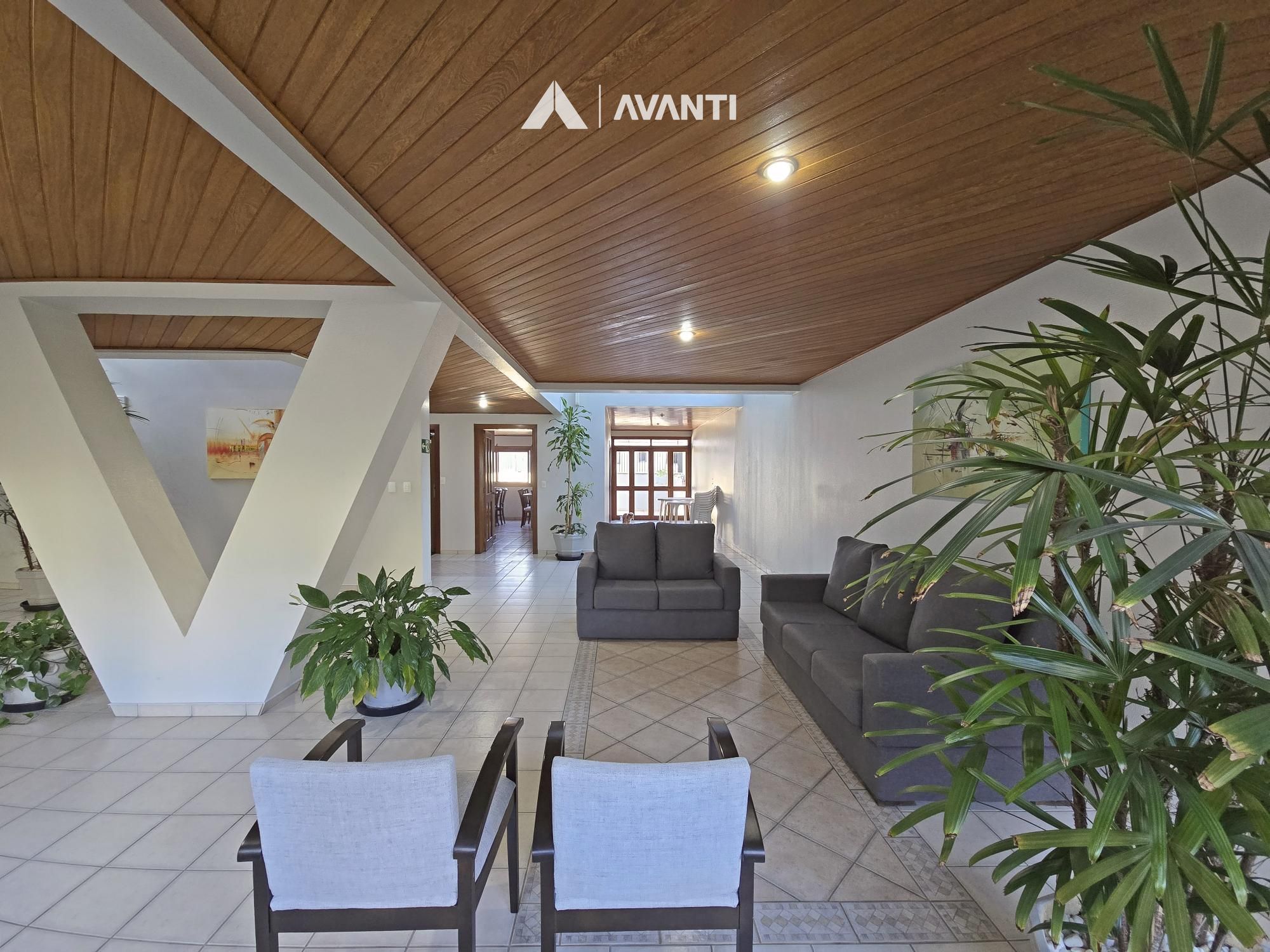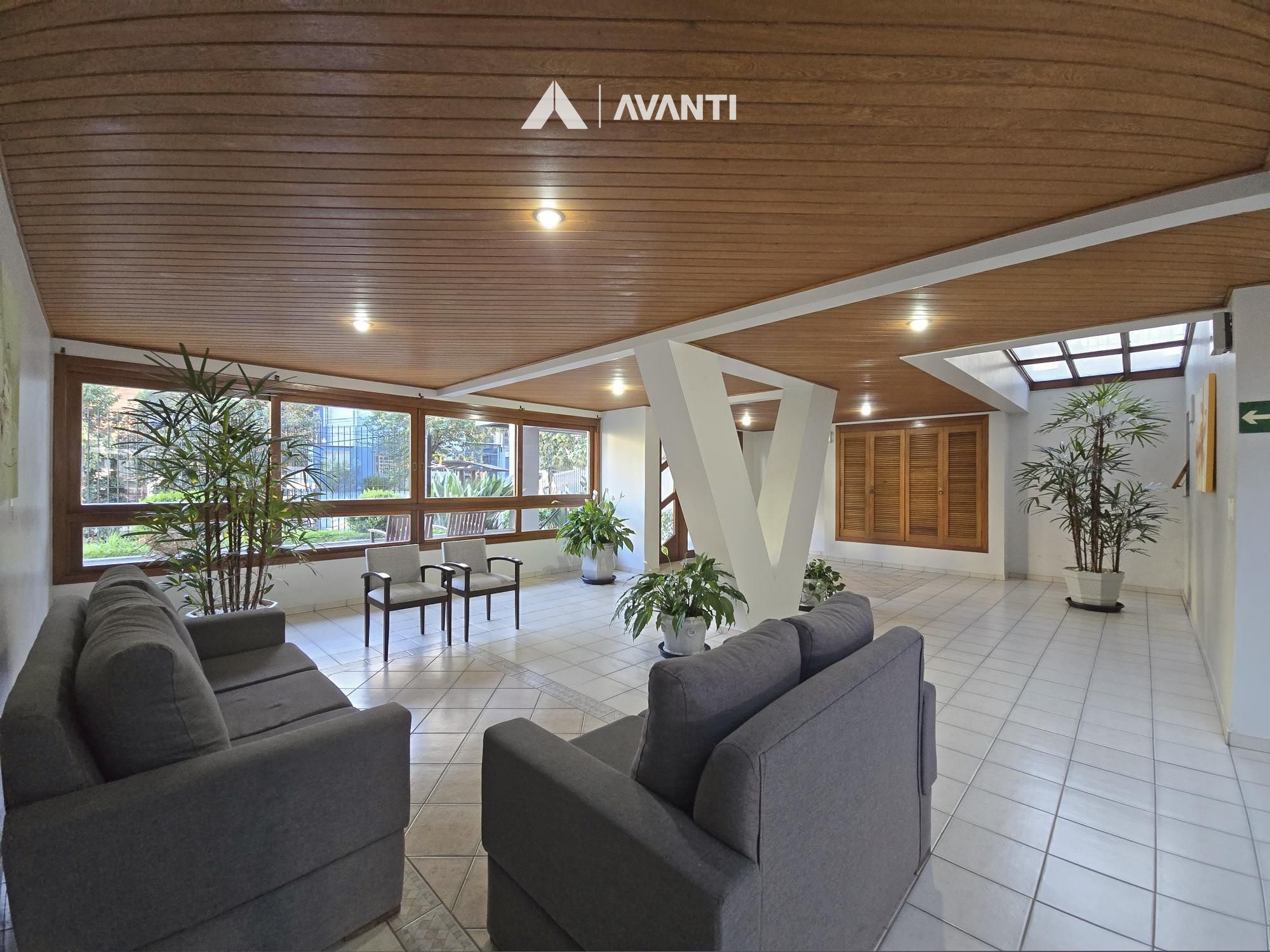 Condomínio com elevador, jardim, gás central e salão de festas.