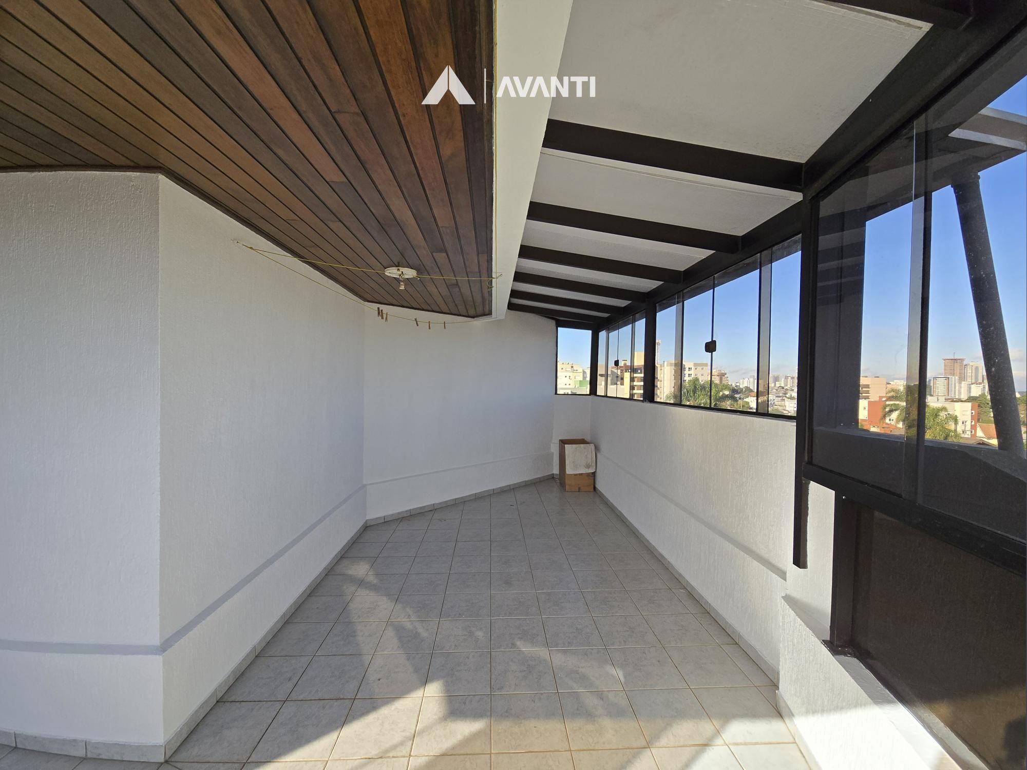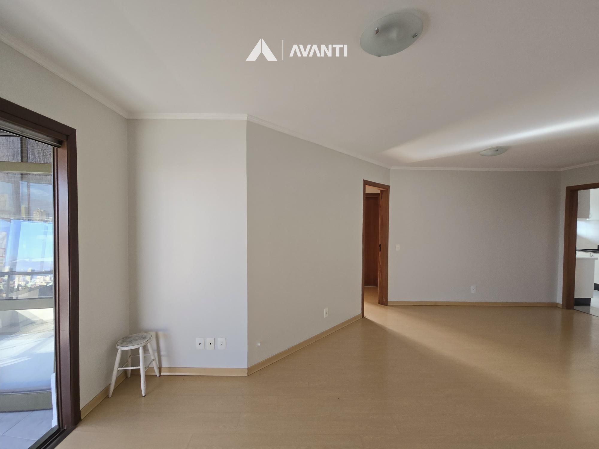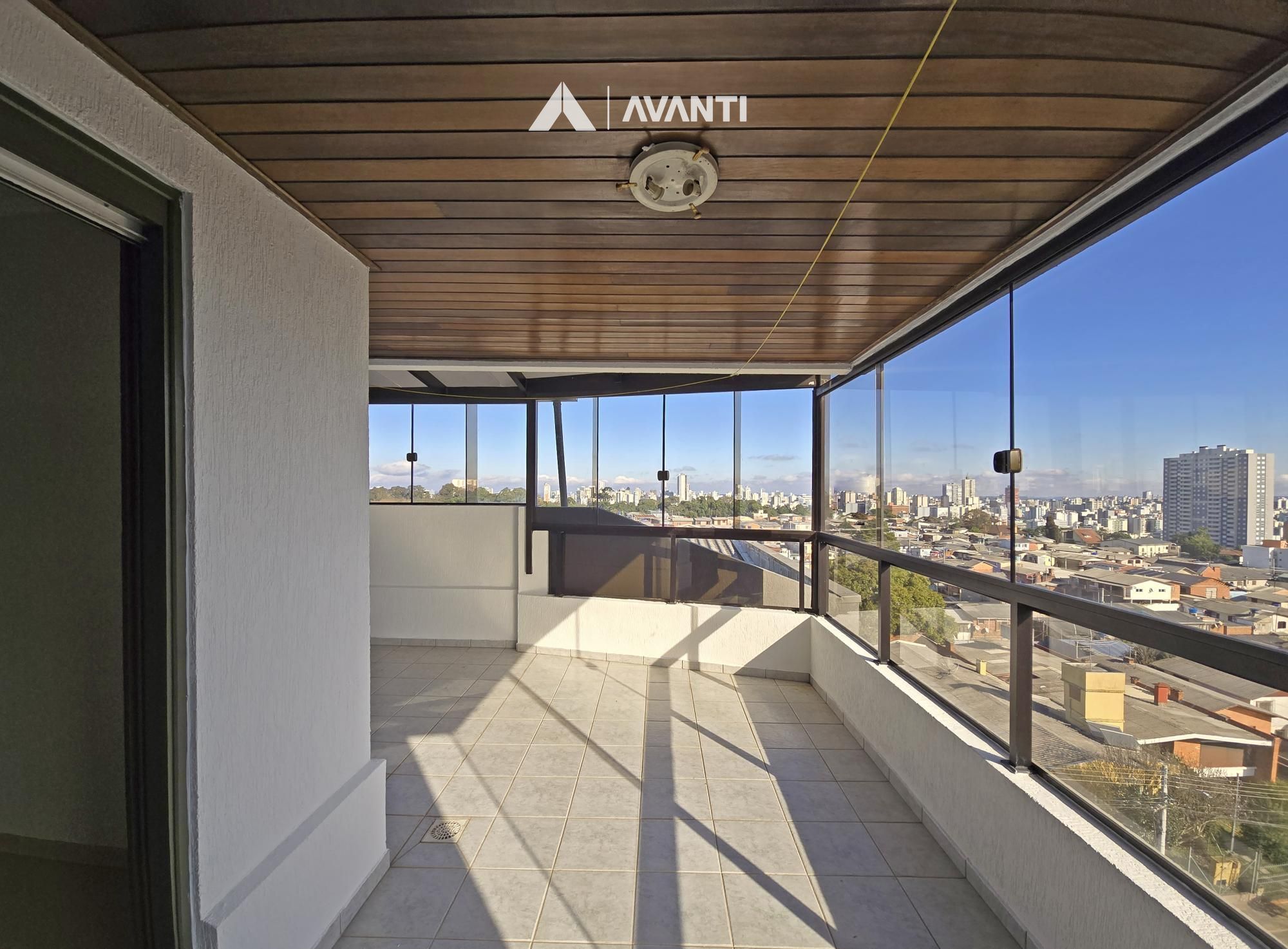 Living integrado, ampla sacada fechada com vista para cidade, cozinha, área de serviço com churrasqueira e banheiro social.