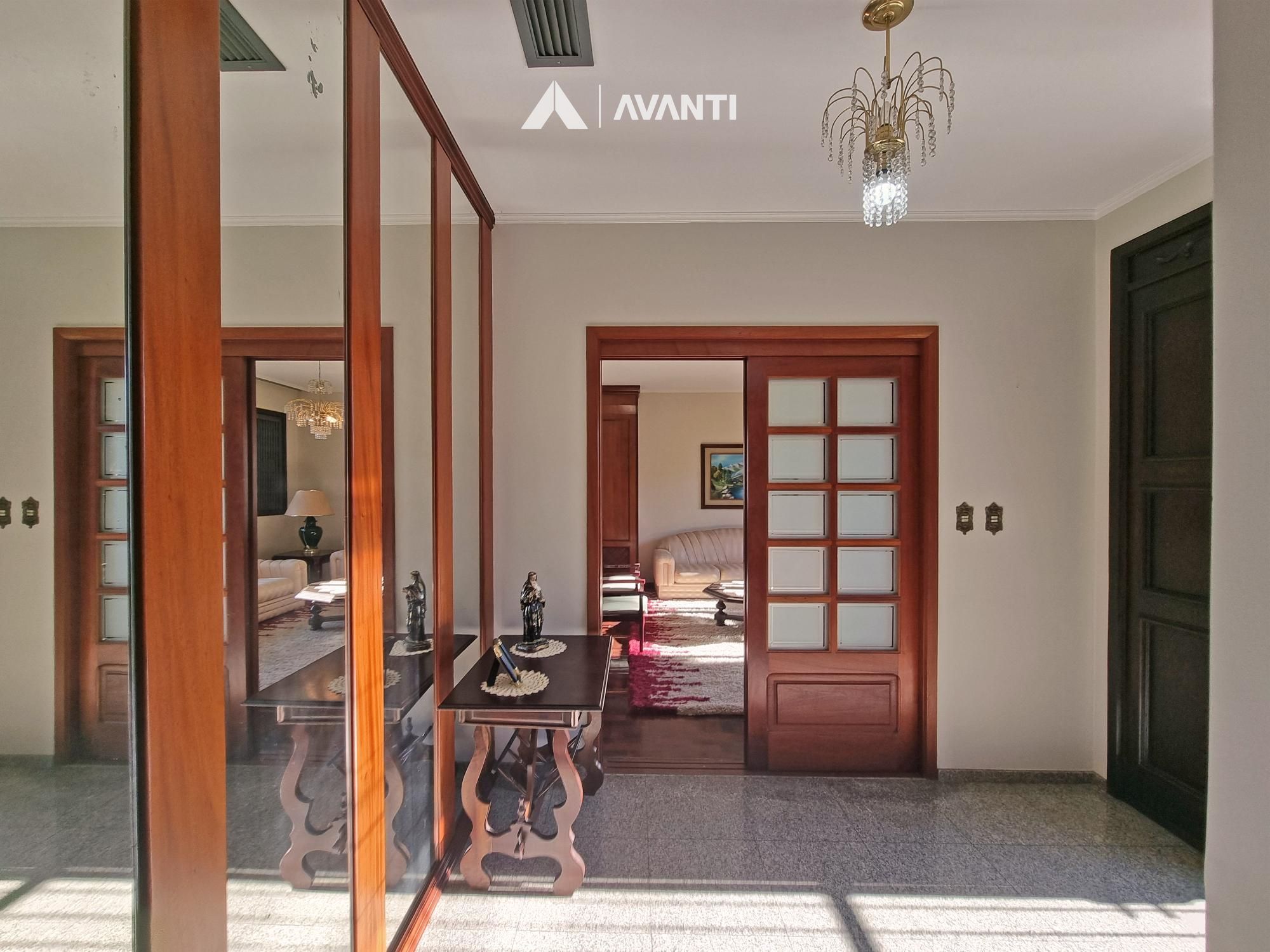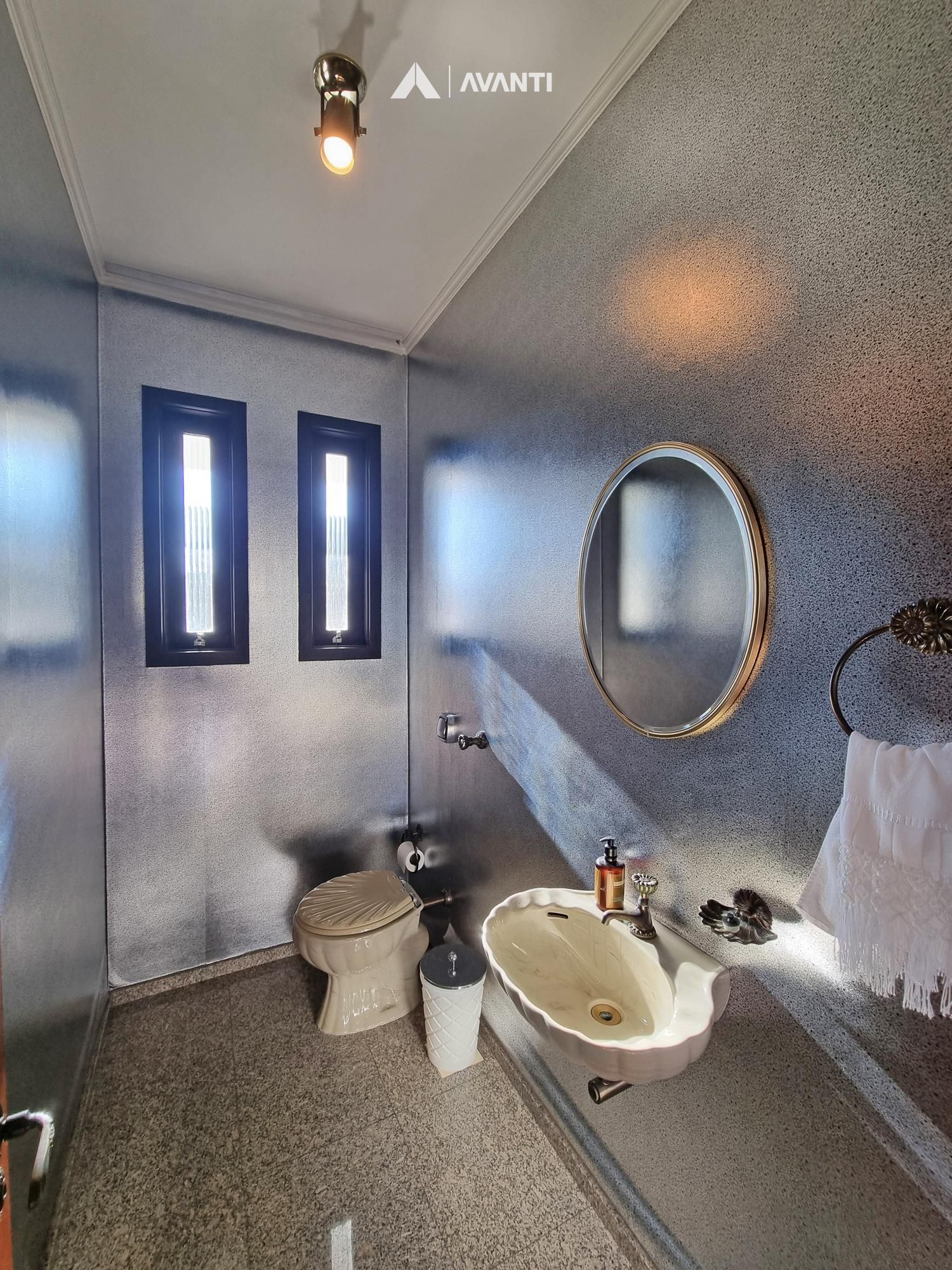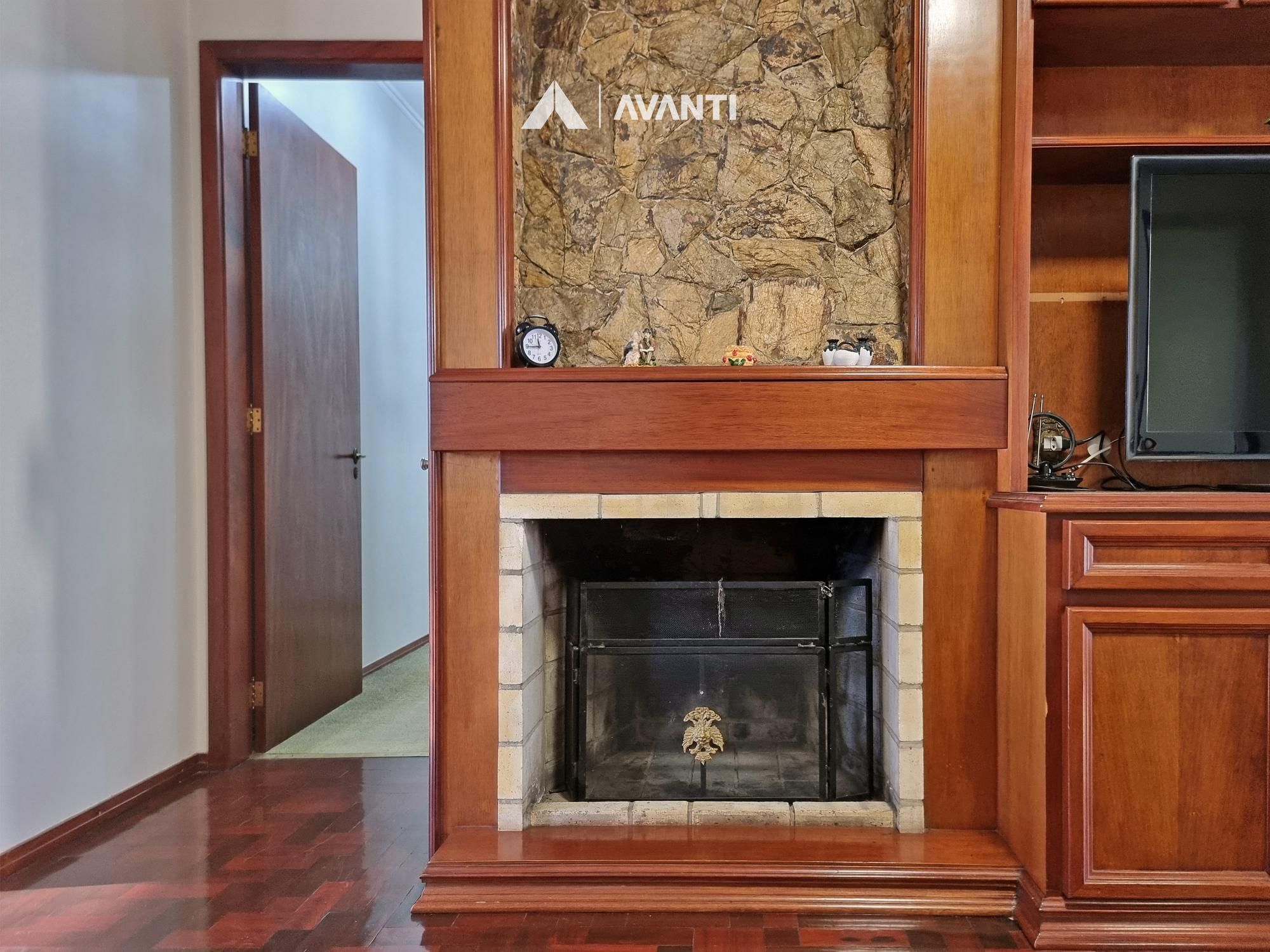Hall de entrada com lavabo e escritório, sala de estar e jantar integradas, cozinha copa, segundo estar social com lareira, área de serviço, banheiro auxiliar e 2 despensas.