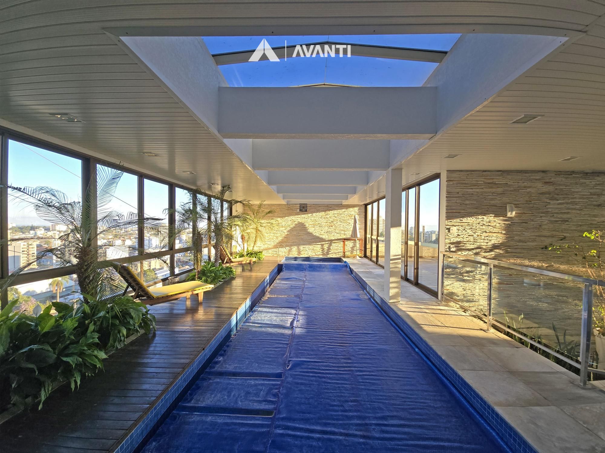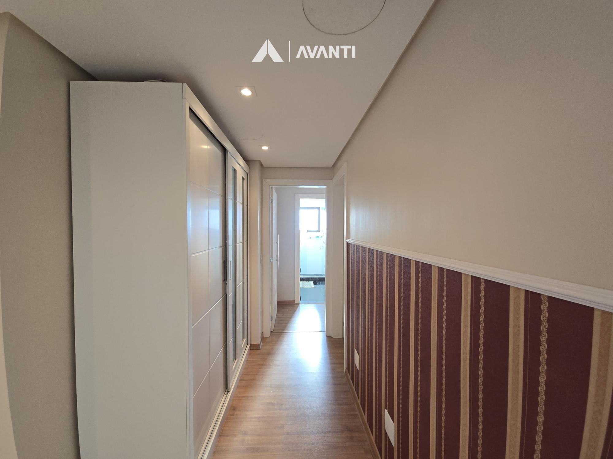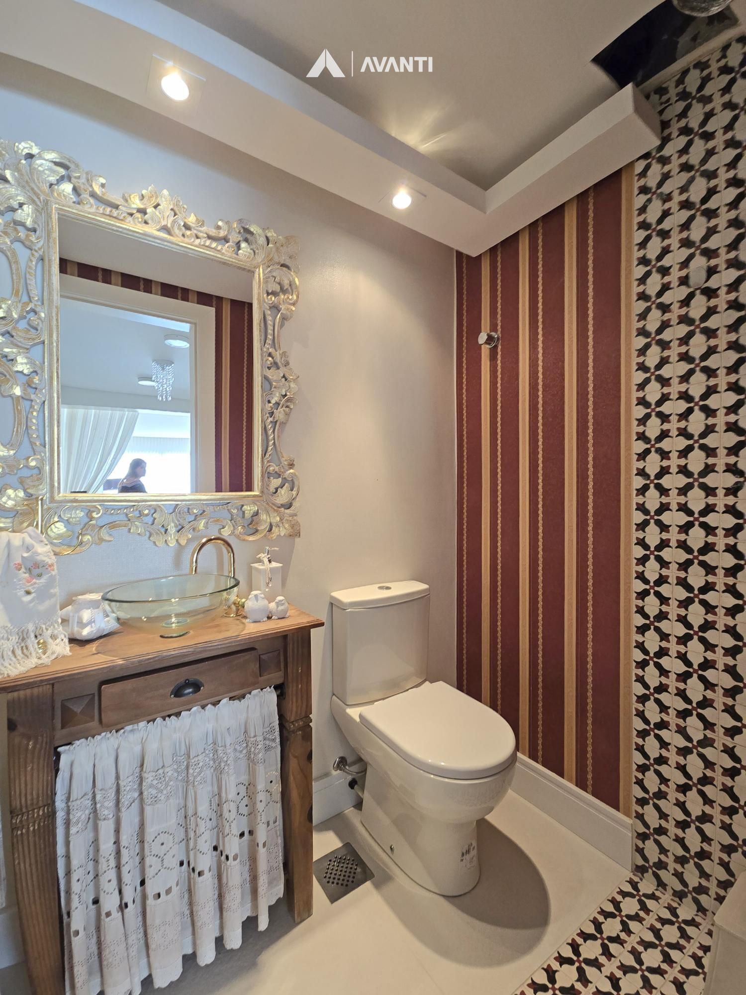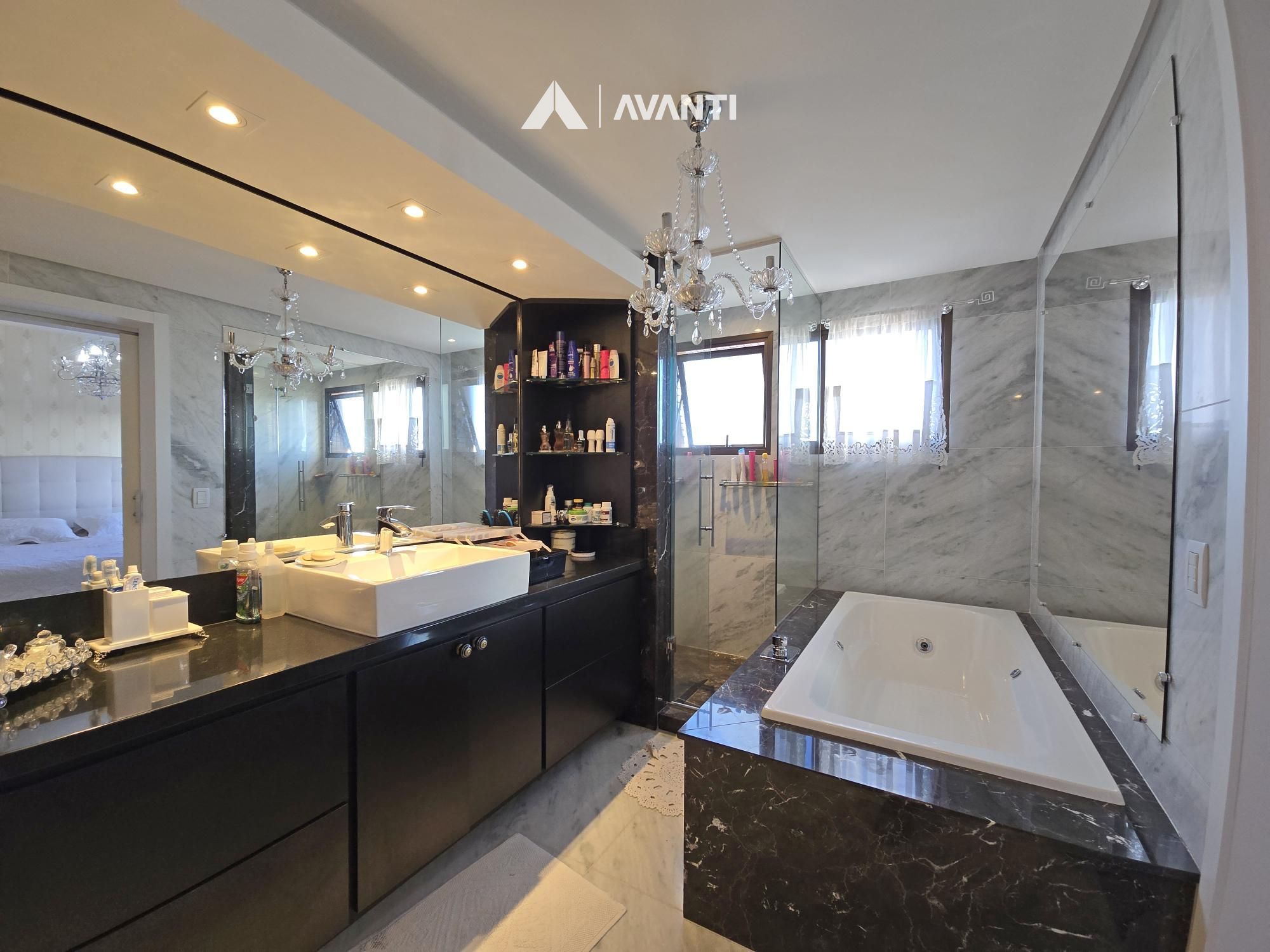 O hall de entrada é privativo, com elevador codificado e lavabo. Ao entrar, o living impressiona com seus quatro ambientes bem definidos: sala de TV, antessala, jantar e espaço gourmet — ideais para receber bem e viver momentos inesquecíveis. A cozinha com copa, área de serviço separada e banheiro auxiliar completam a funcionalidade do lar.