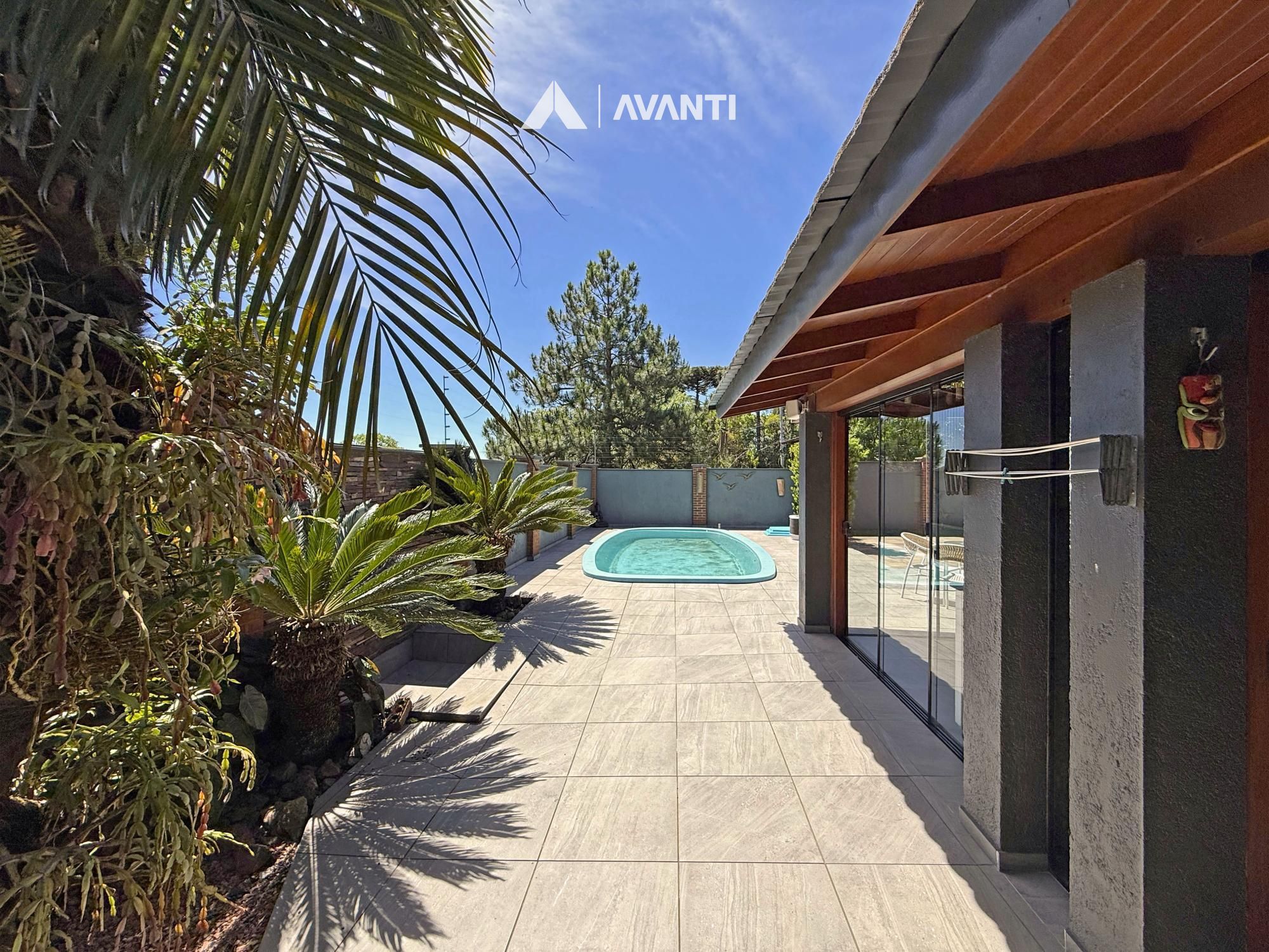 Logo na fachada, um amplo jardim arborizado recebe com charme e serenidade. Um acesso lateral conduz ao pátio dos fundos, onde a piscina convida para tardes de sol, e o espaço gourmet mobiliado integra com harmonia a área externa — cenário perfeito para encontros e celebrações.