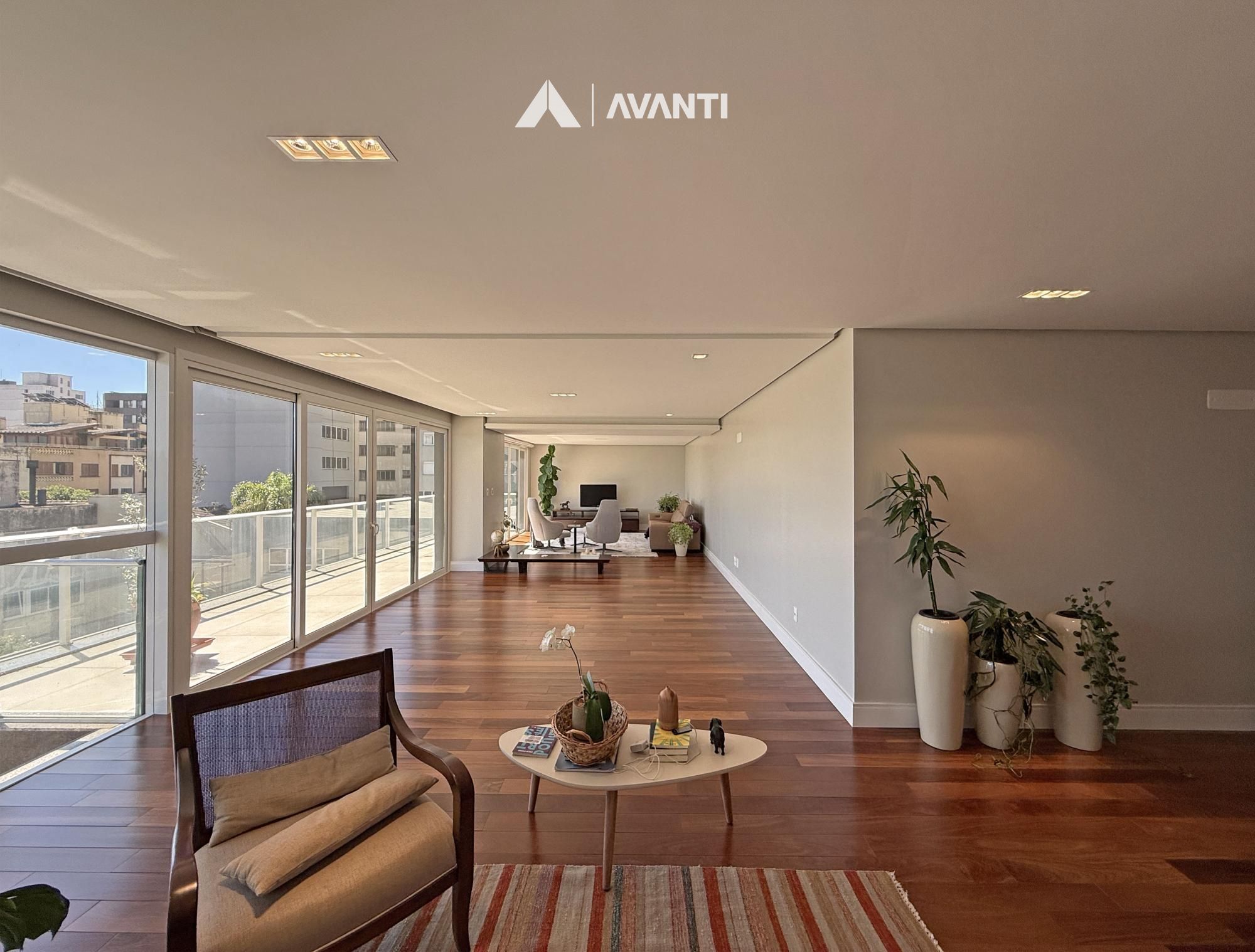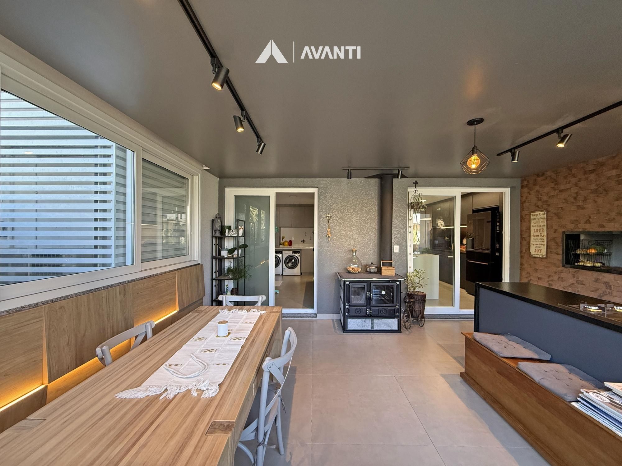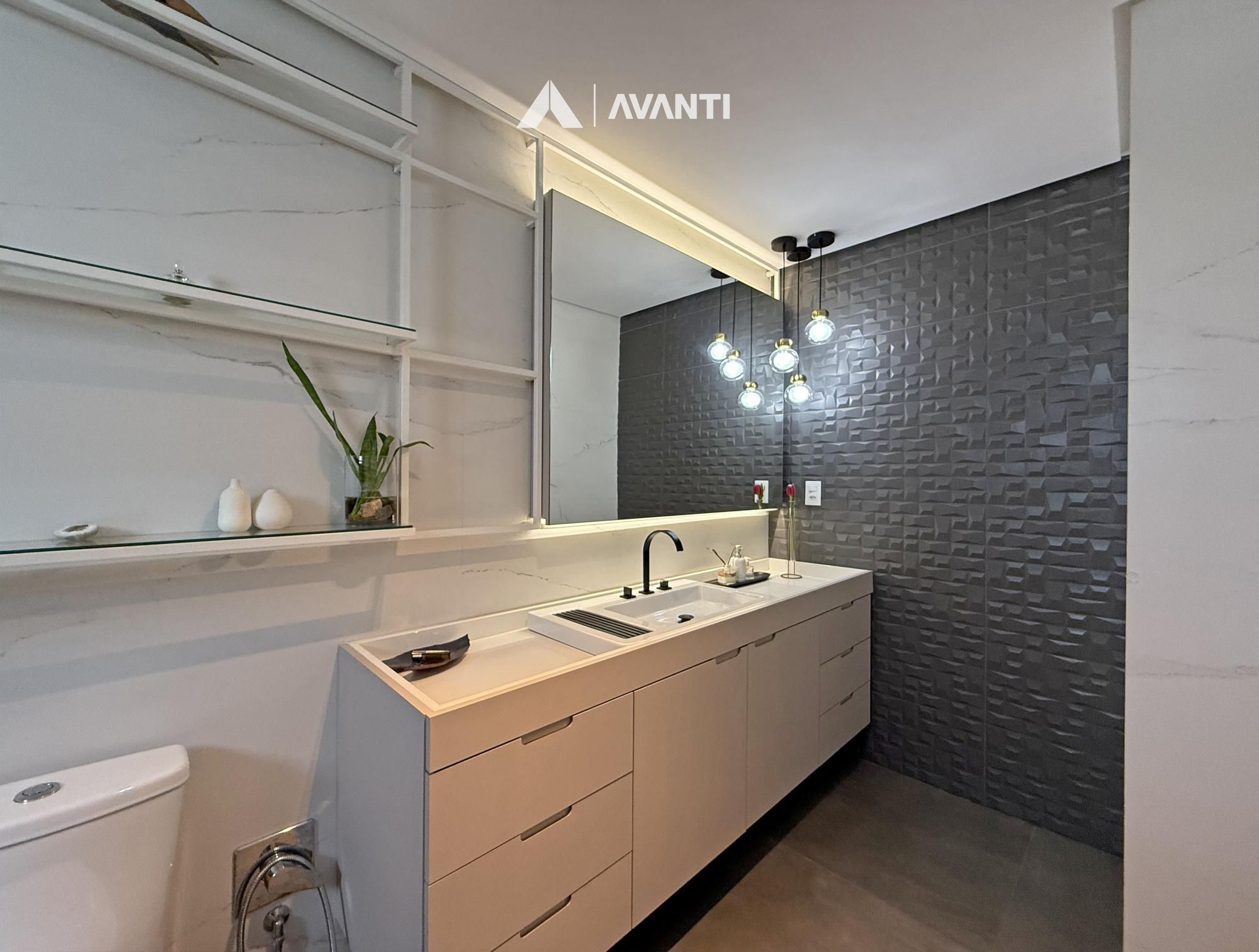 Com 296m² privativos, dispõe de 3 suítes sendo 1 máster e vaga para 4 carros.