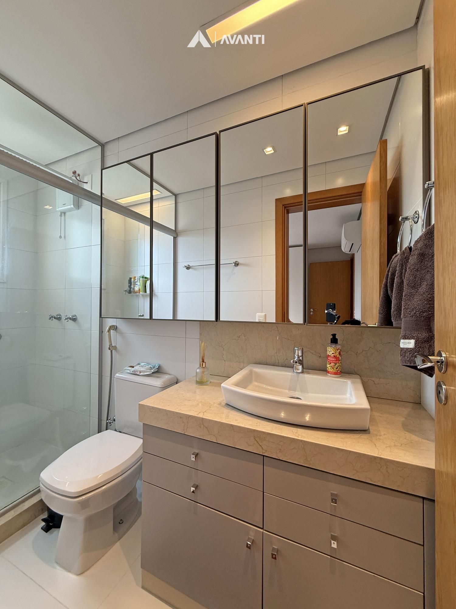 Detalhes que fazem a diferença: piso laminado e porcelanato, splits e aquecedor de passagem instalados e vaga para 2 carros. Um apartamento pensado para quem busca praticidade sem abrir mão de qualidade.