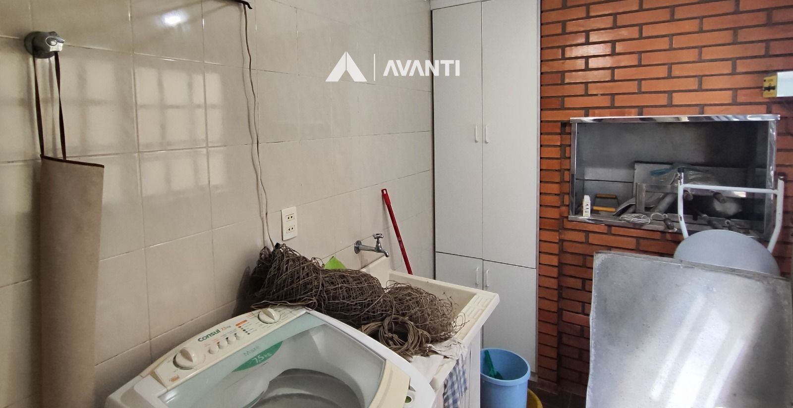Área de serviço com churrasqueira, banheiro social, sacada.