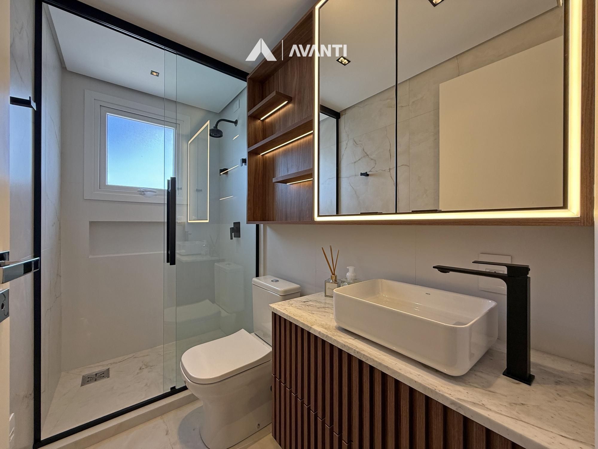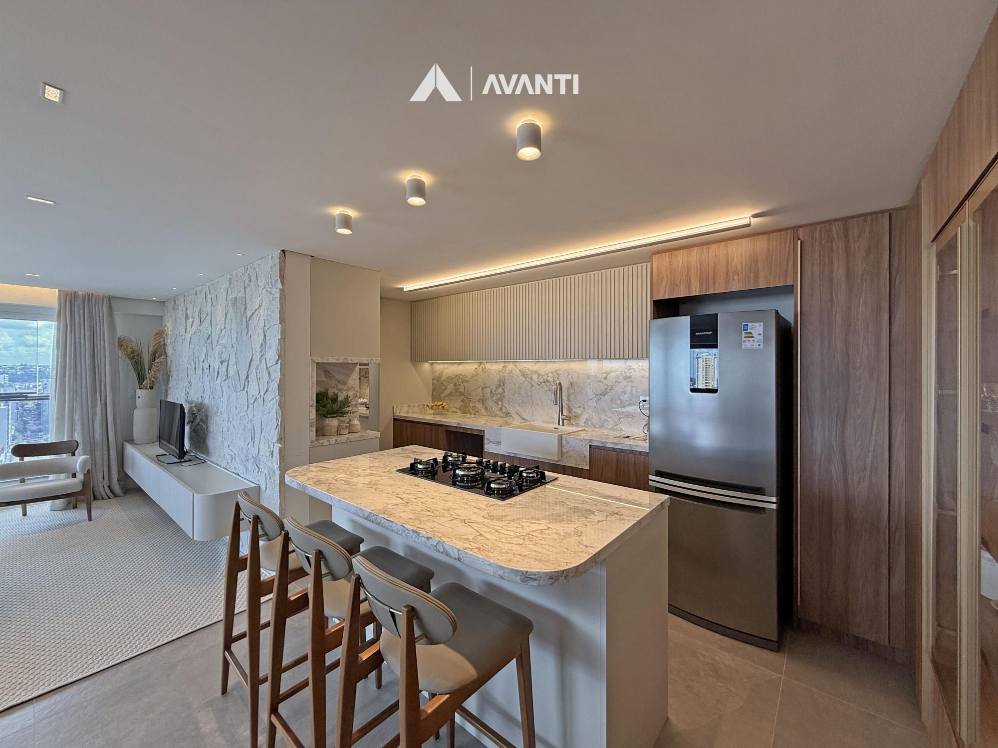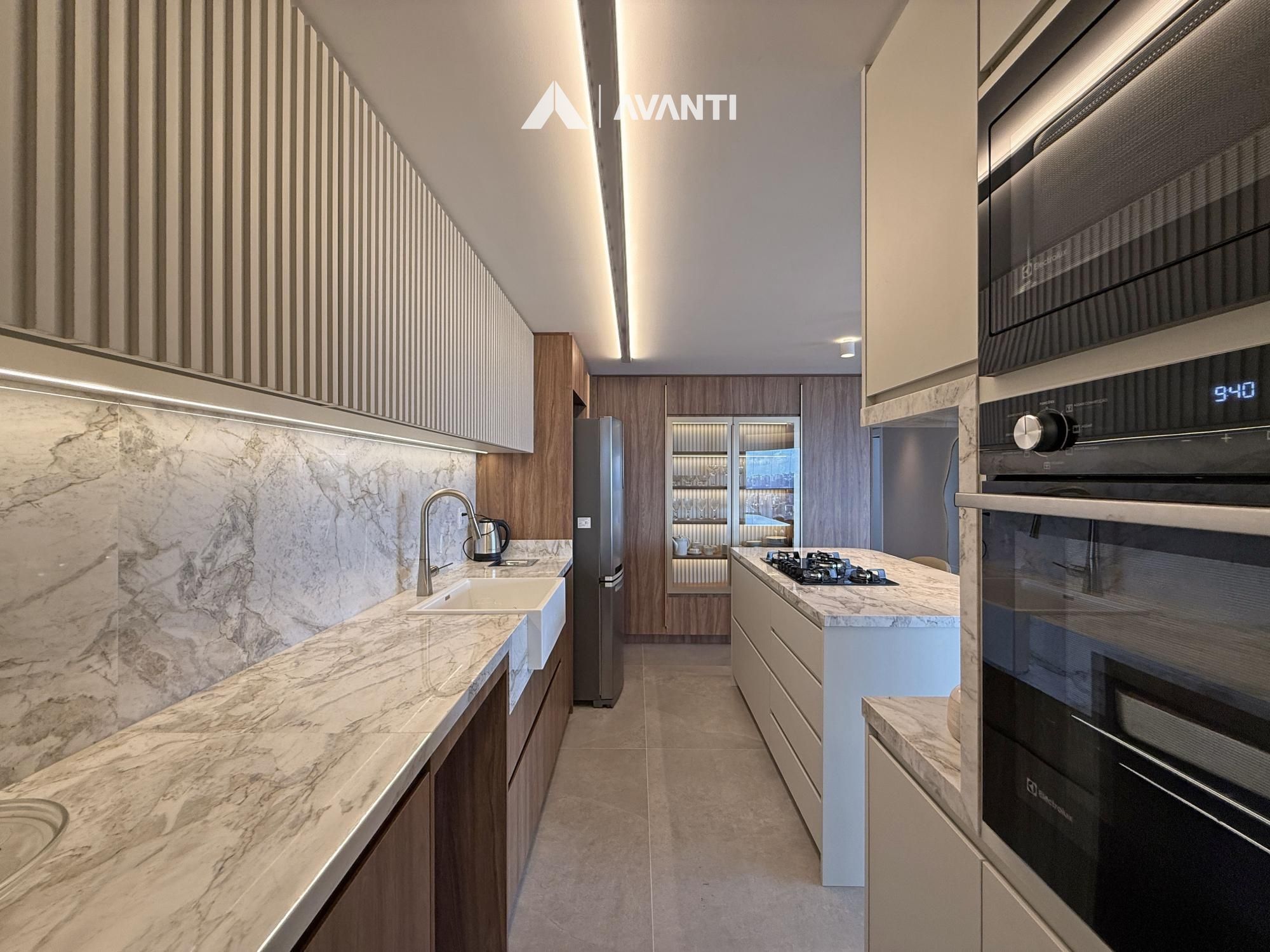 Com 176m² privativos, o layout privilegia o convívio: cozinha americana integrada ao estar e jantar, conectada a uma ampla varanda gourmet com vista panorâmica e fechamento reiki. A excelente posição solar norte/oeste reforça a sensação de amplitude, enquanto a lavanderia com acesso à sacada e os banhos com ventilação e iluminação natural agregam funcionalidade ao dia a dia.