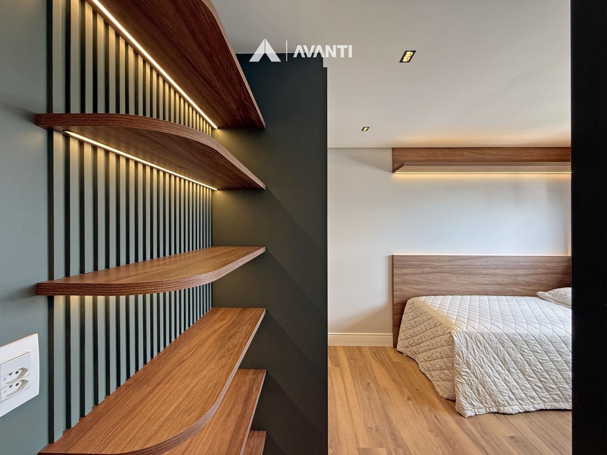 A área íntima conta com 3 suítes, sendo 1 máster, garantindo conforto e privacidade. O apartamento dispõe ainda de vaga para 3 carros e apresenta uma fachada de identidade contemporânea, marcada pelo jogo de luz e sombra criado pelos brises móveis.