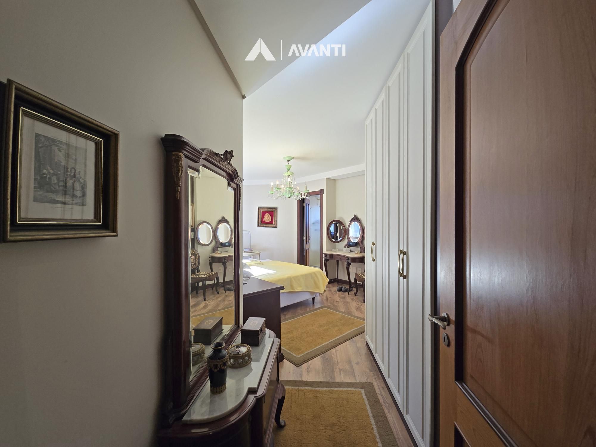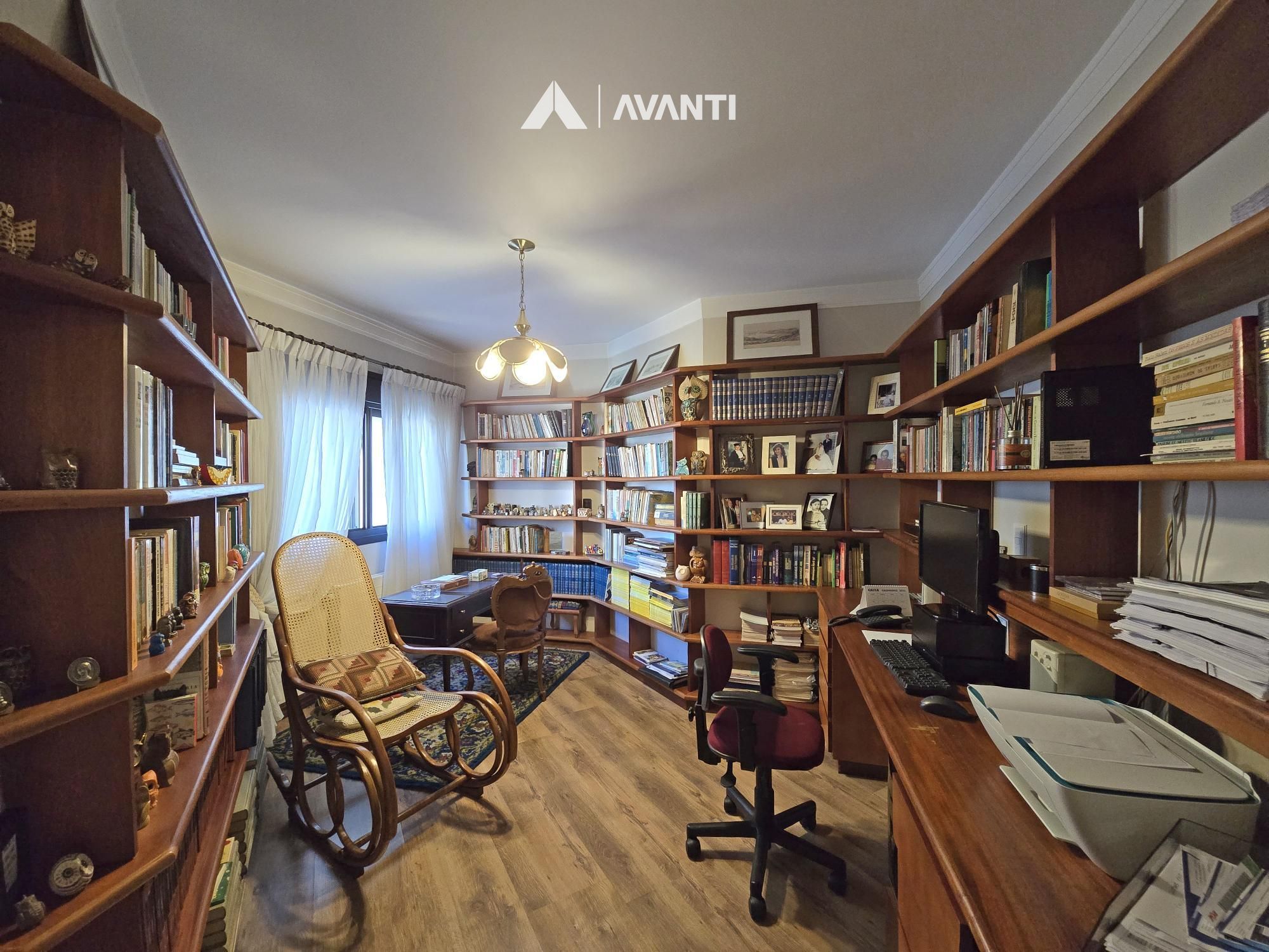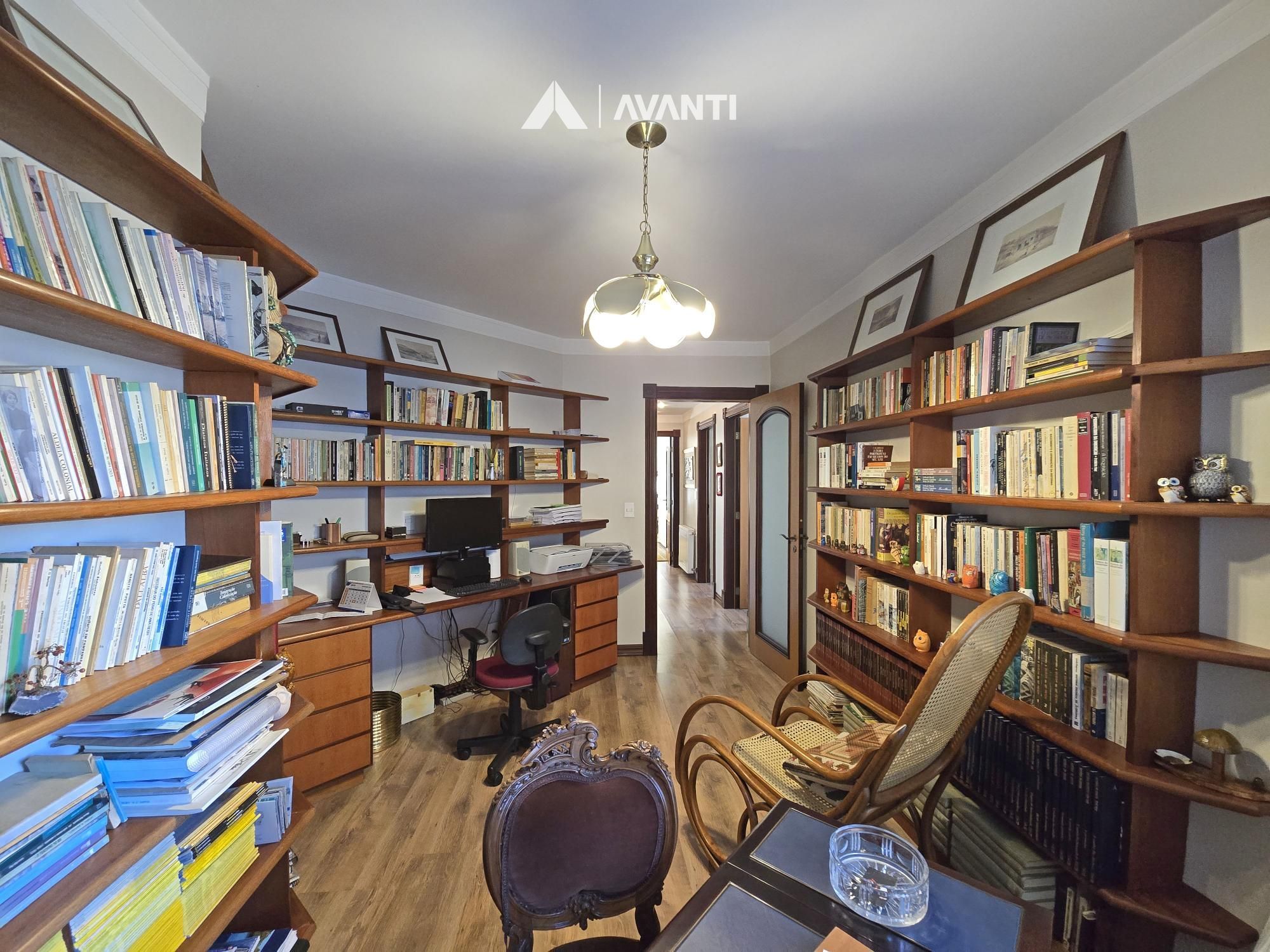 Na área íntima, são 3 suítes, sendo 1 máster, além de escritório reservado, solução ideal para quem precisa de um ambiente de trabalho em casa. O imóvel conta ainda com 4 vagas de garagem e depósito.