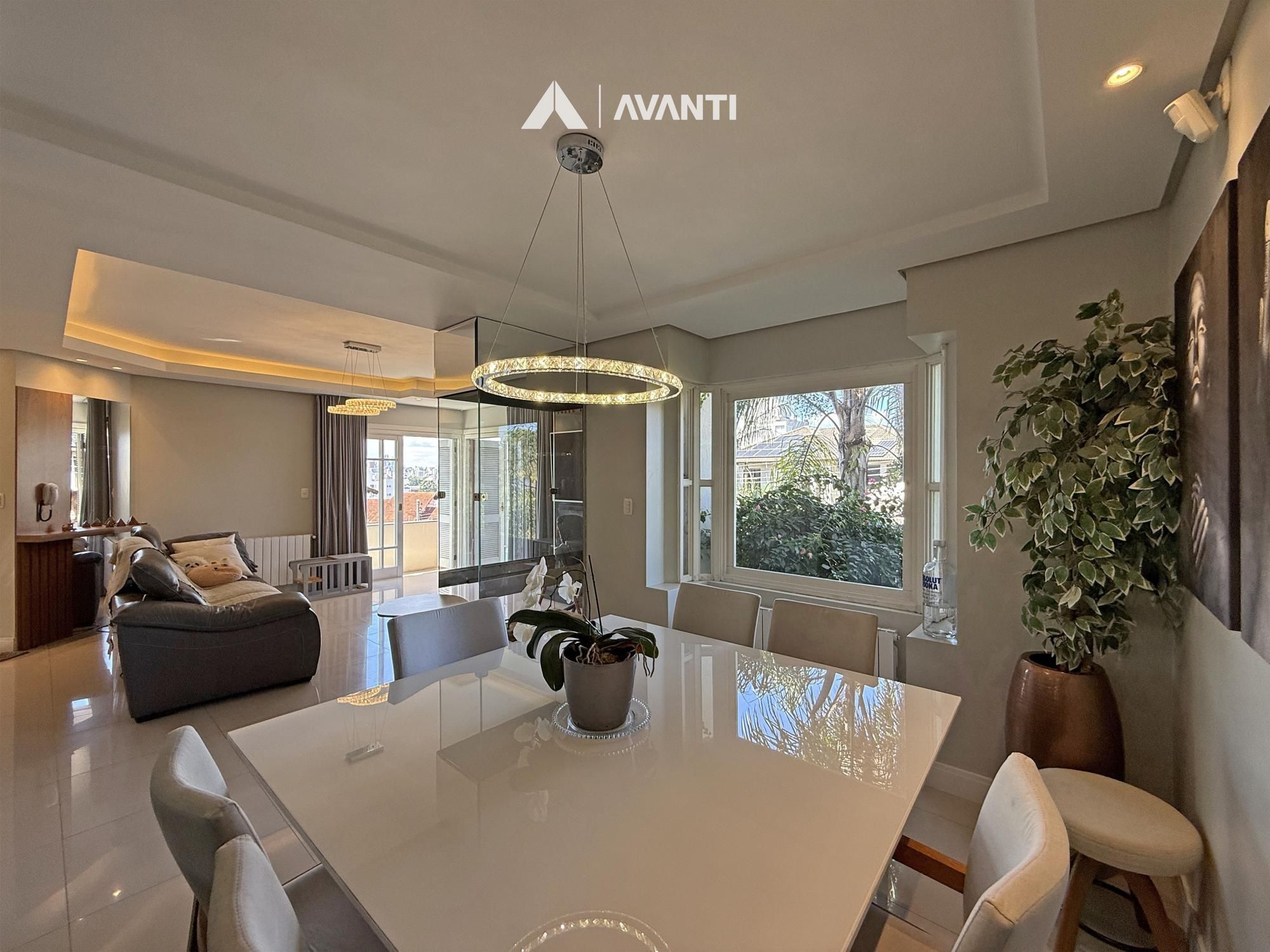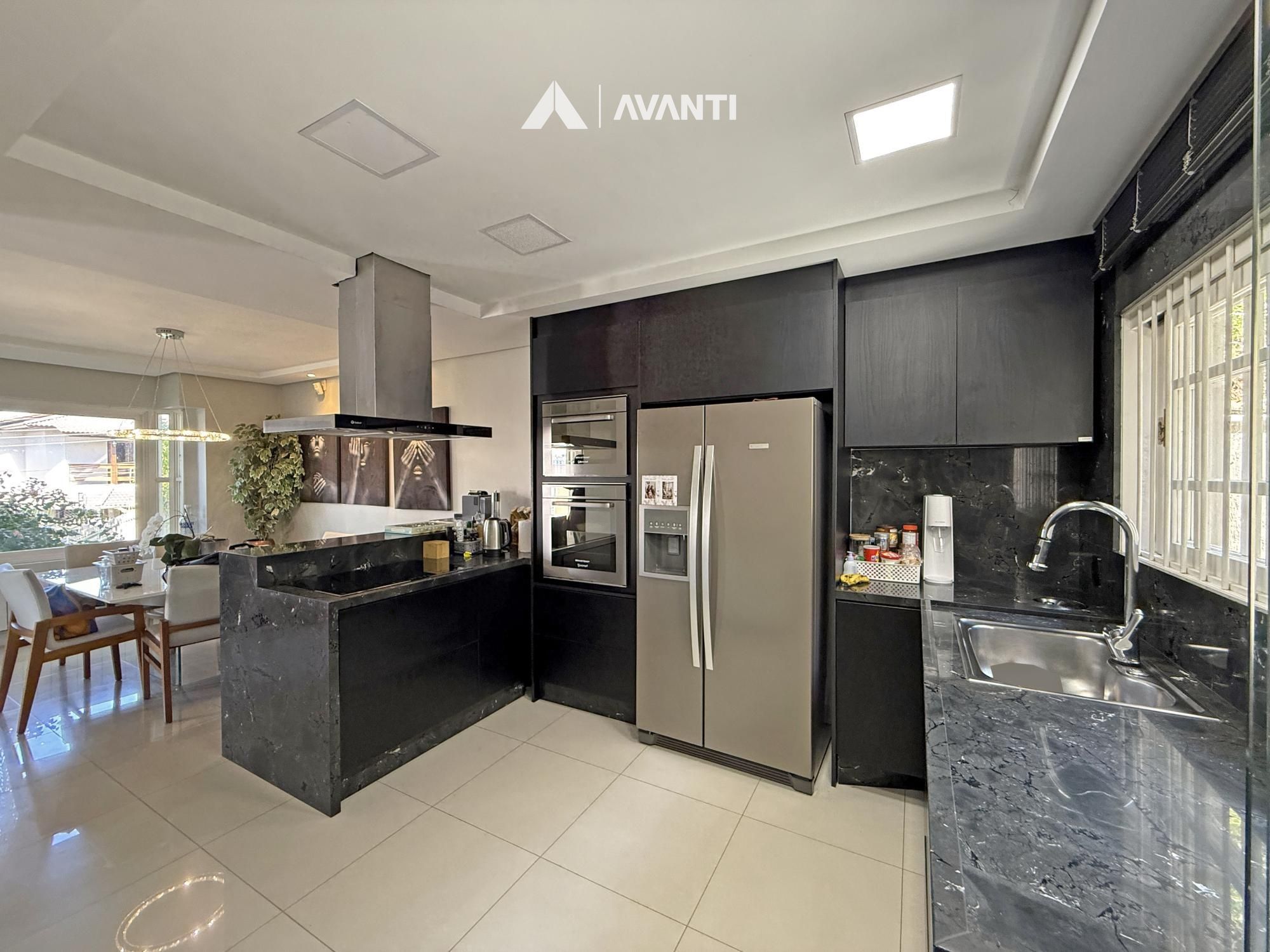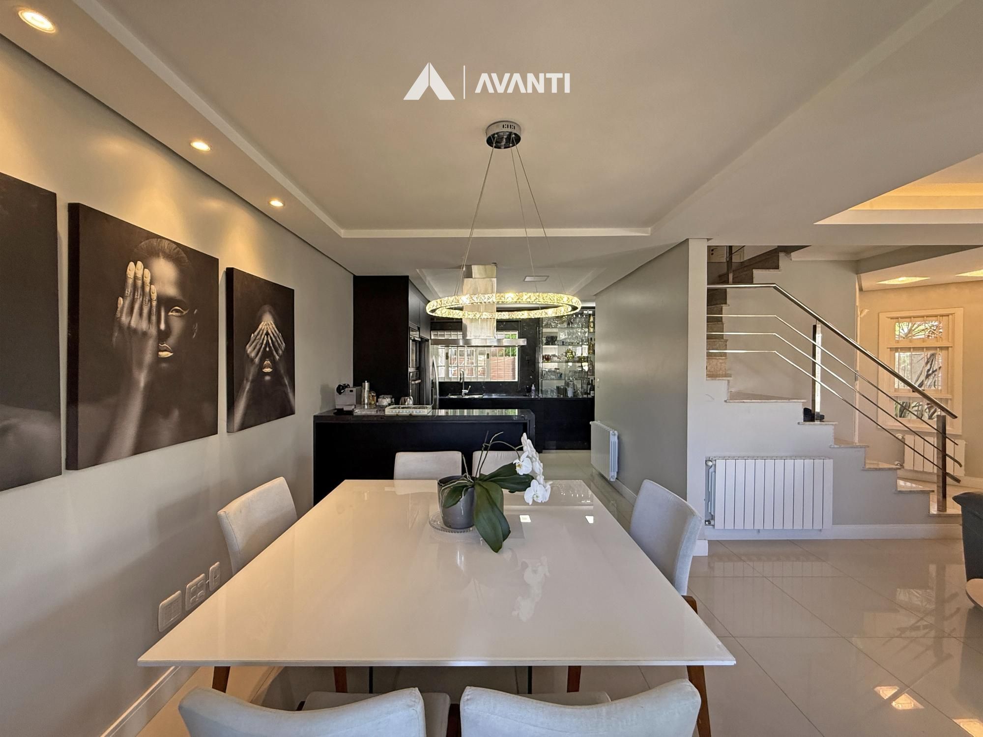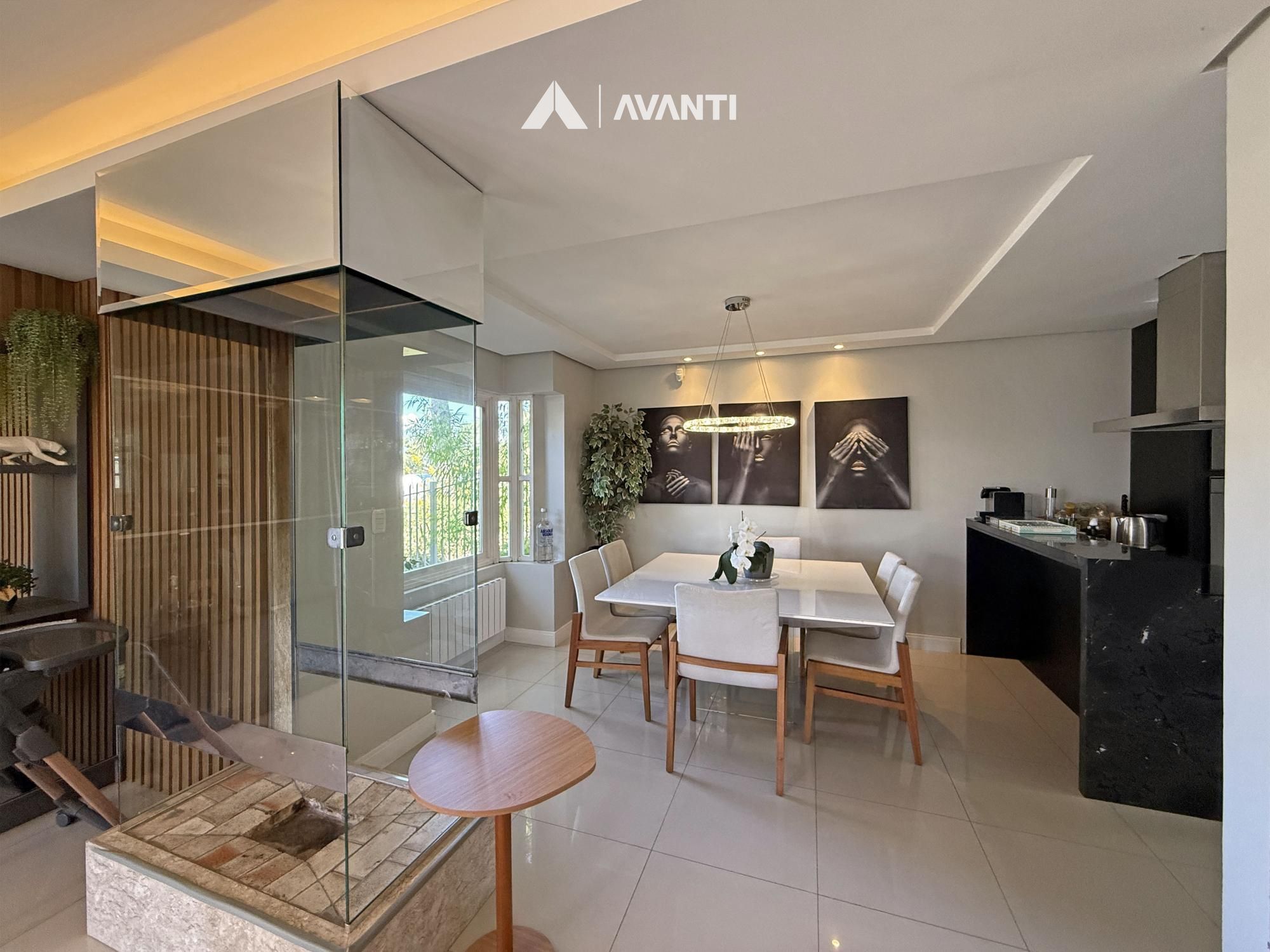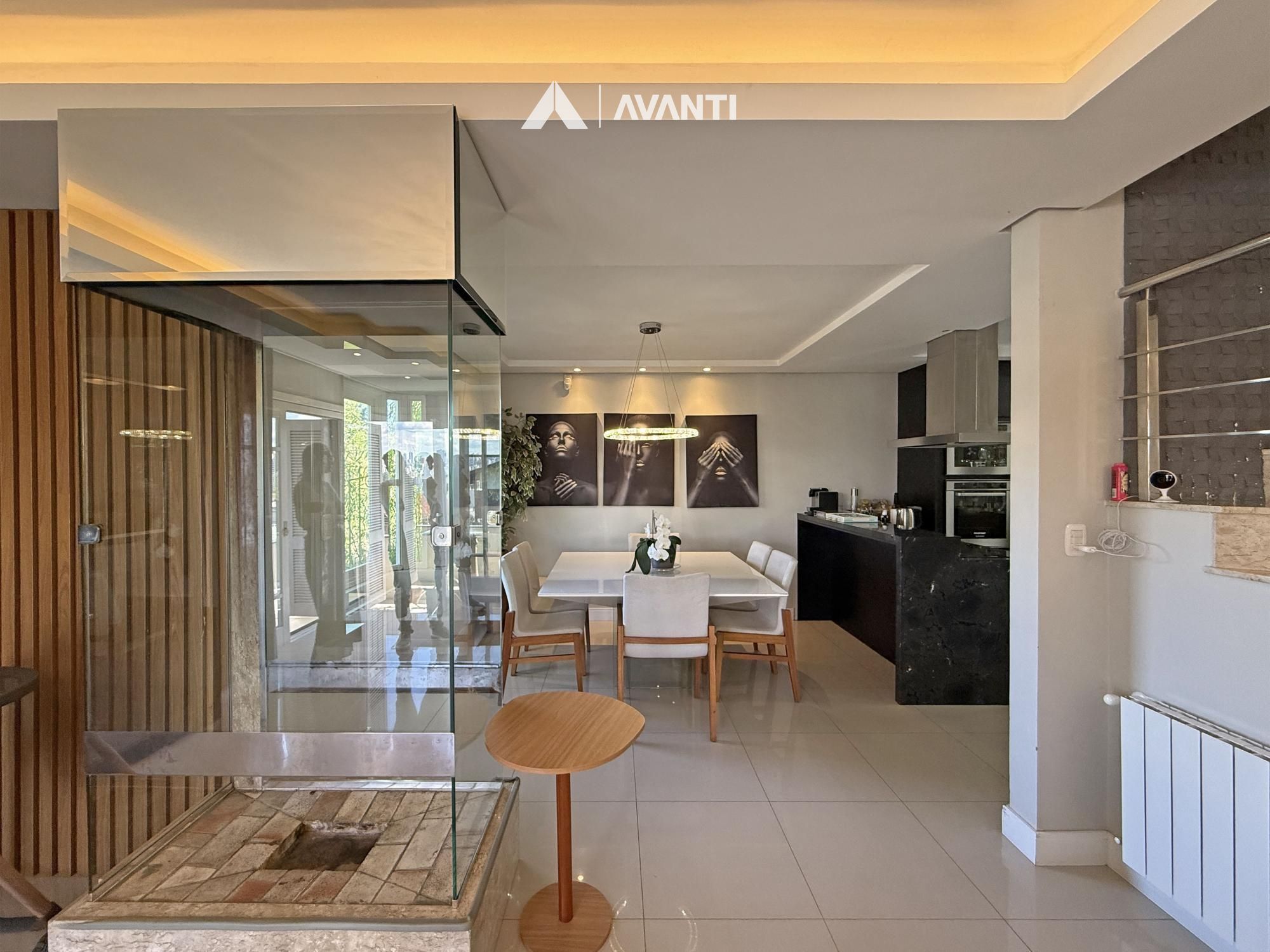 Implantada em um terreno de 360 m², esta casa oferece 227 m² privativos com uma proposta que valoriza amplitude e integração. O living moderno com lareira cria um ambiente acolhedor, com conexão direta à sacada e à luz natural, integrando sala de estar, jantar e cozinha americana com bancada de forma funcional.