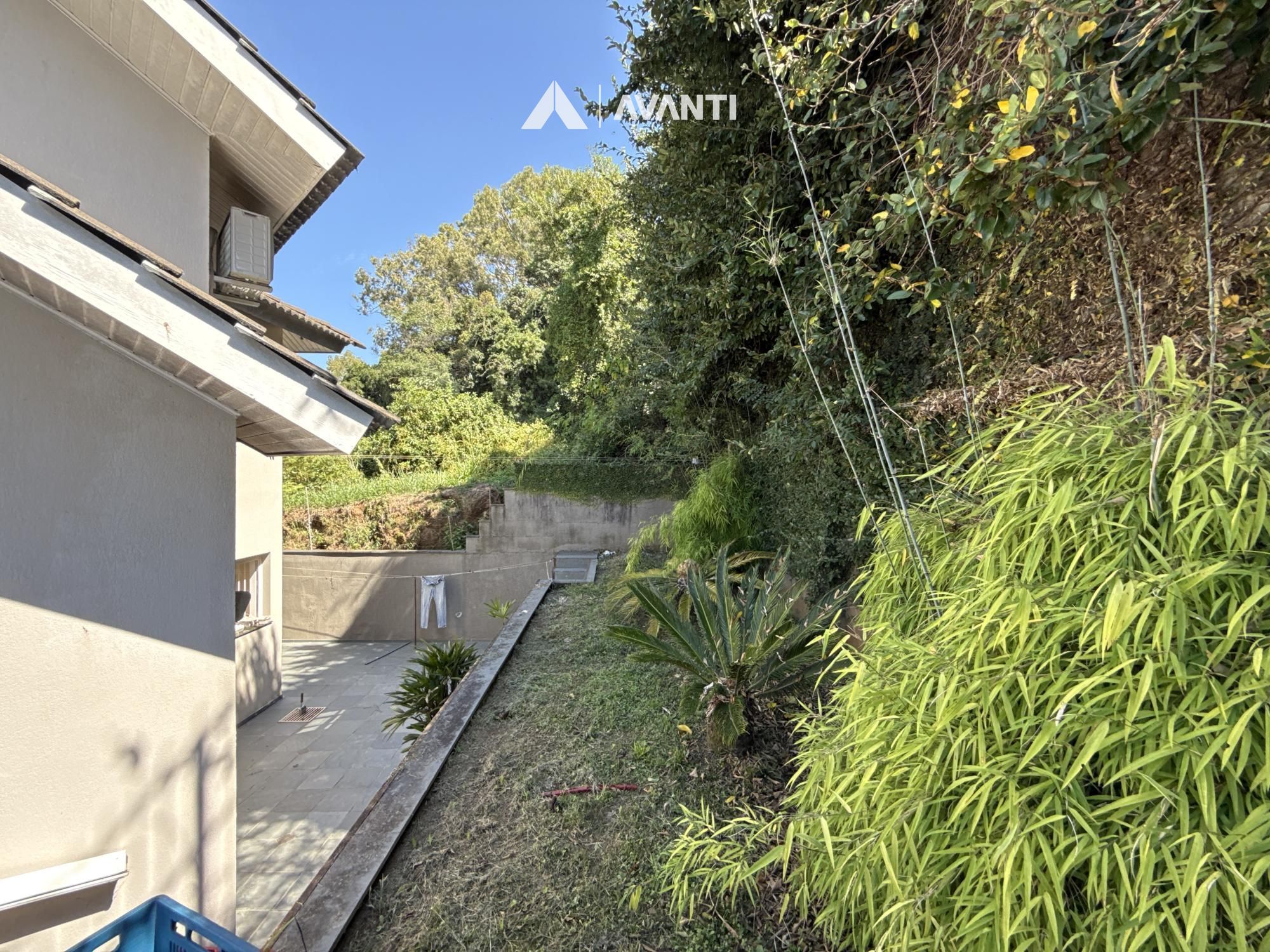 O acesso conta com hall de entrada e lavabo, enquanto a área social se complementa com despensa, espaço gourmet integrado à garagem, área de serviço separada e um pátio nos fundos com gramado e jardim, ideal para quem busca mais espaço e convivência ao ar livre.