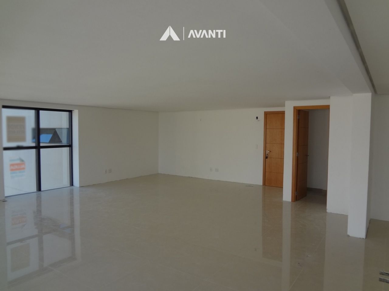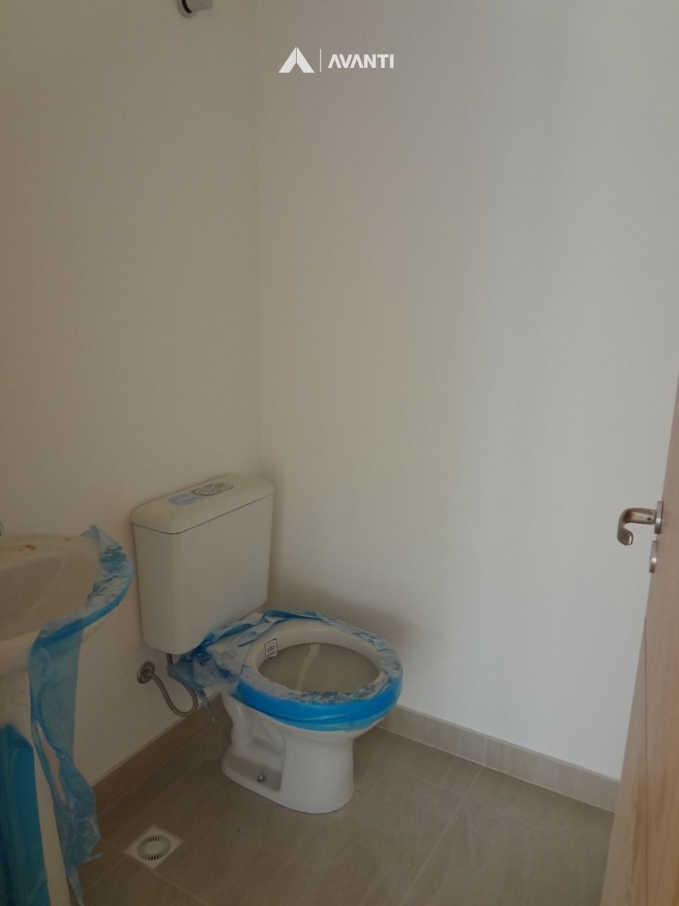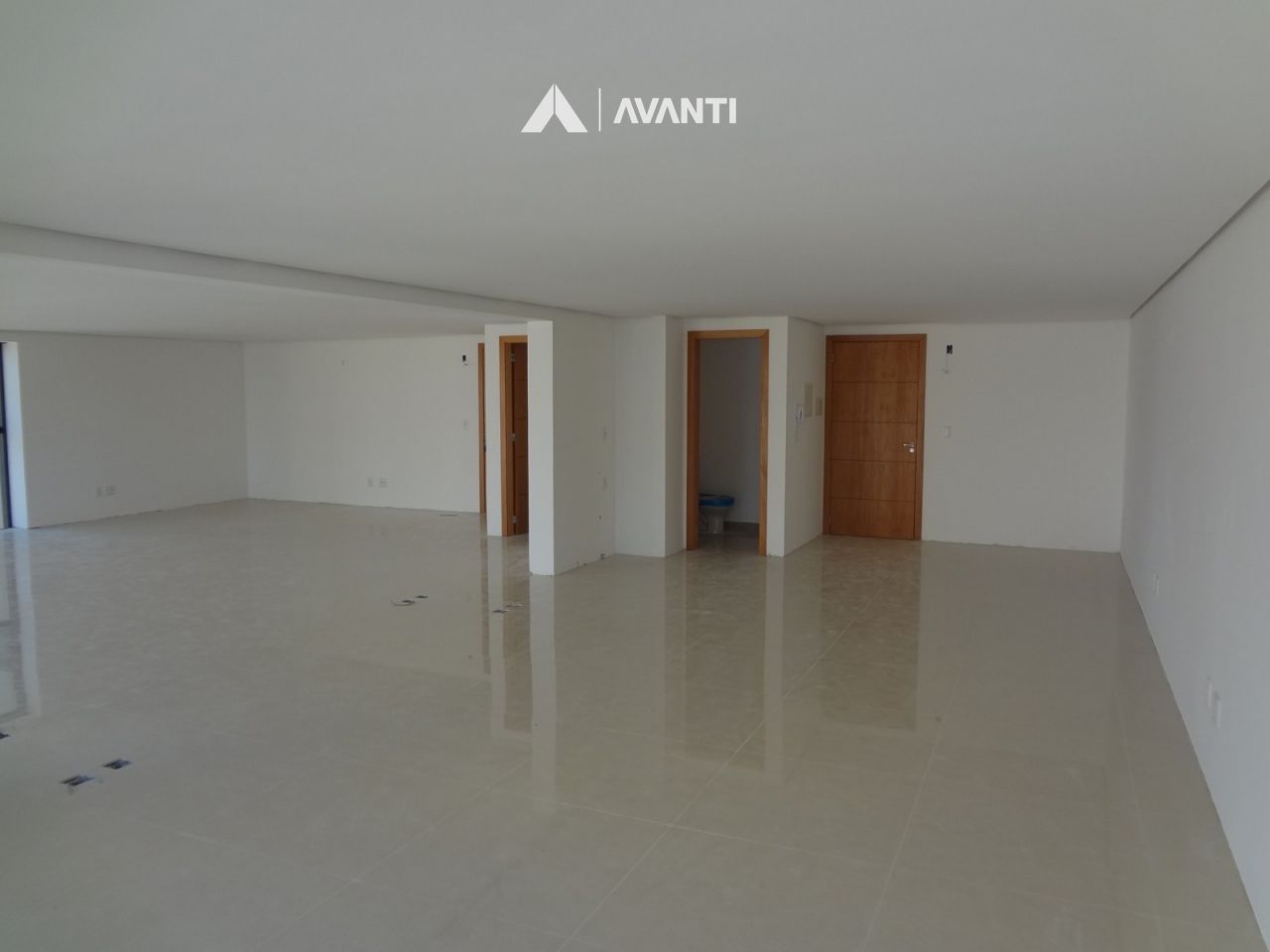 A sala possui 2 lavabos, piso em porcelanato e 2 vagas de garagem.