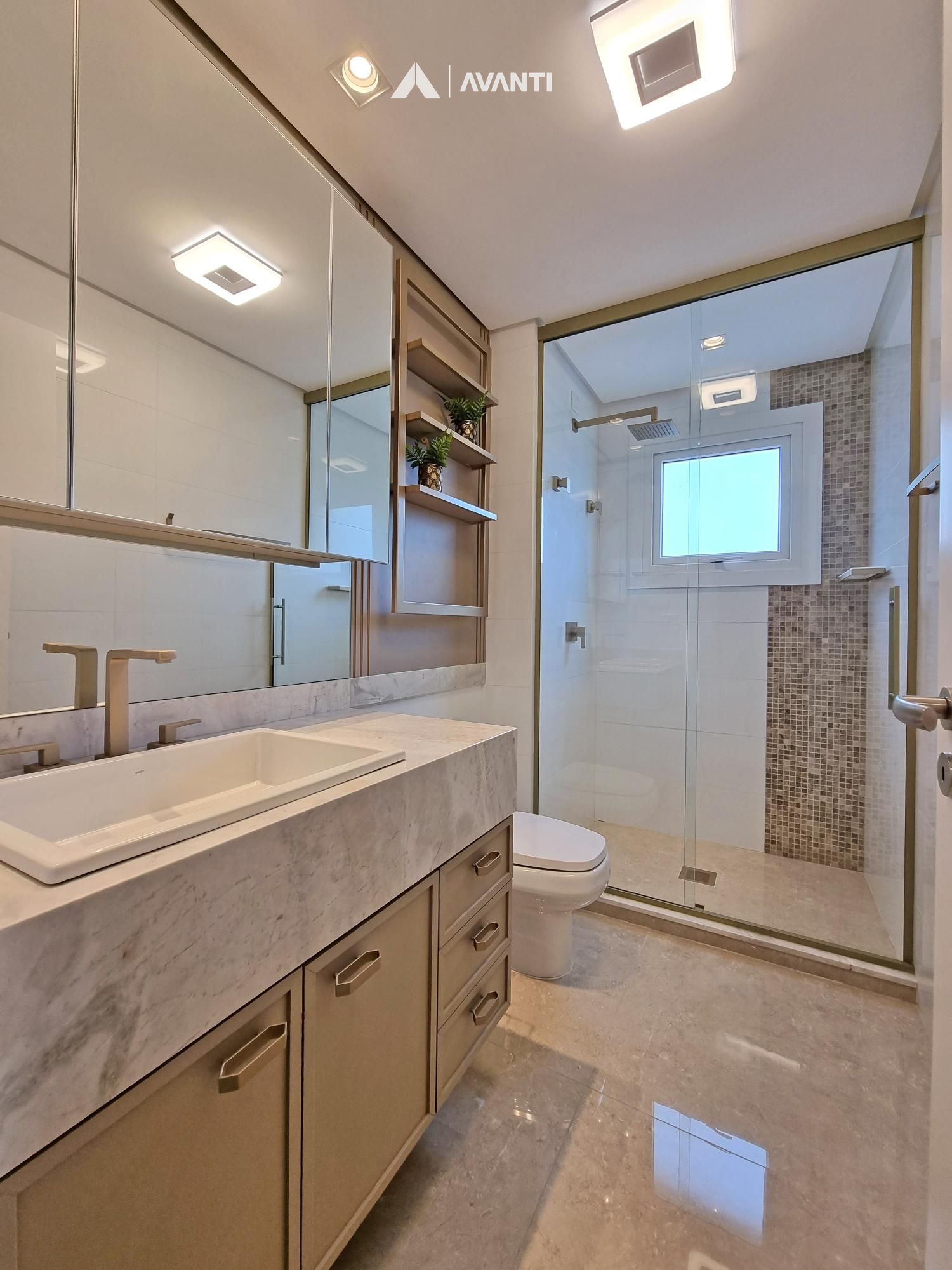 Acabamento de alto padrão, paredes externas duplas, piso em madeira laminada nos dormitórios e porcelanato no living, esquadrias em PVC com vidro duplo, espera para calefação, split e água quente, hidrômetro individual e gás central.