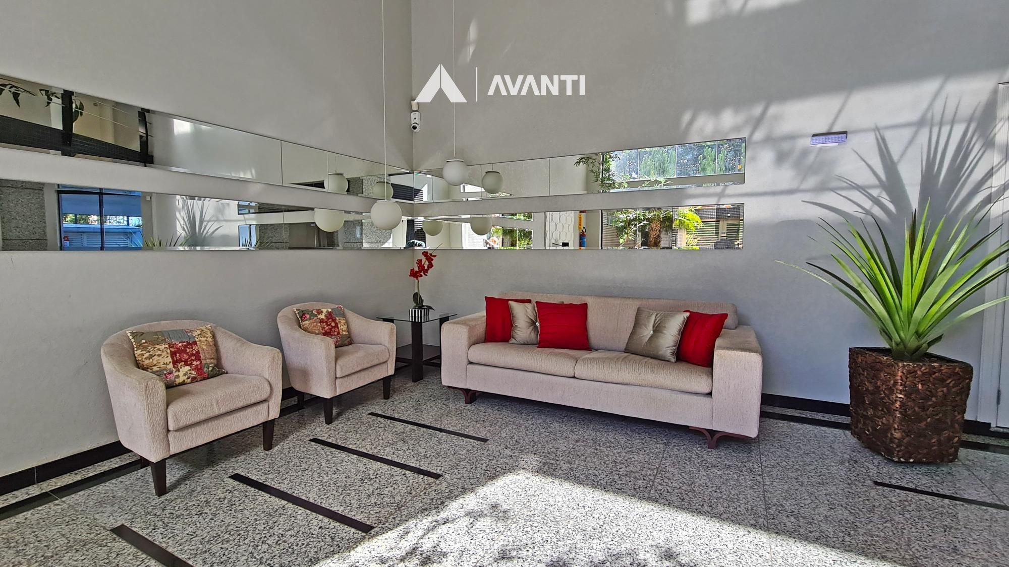 Condomínio com hall decorado, salão de festas, elevador e gás central.