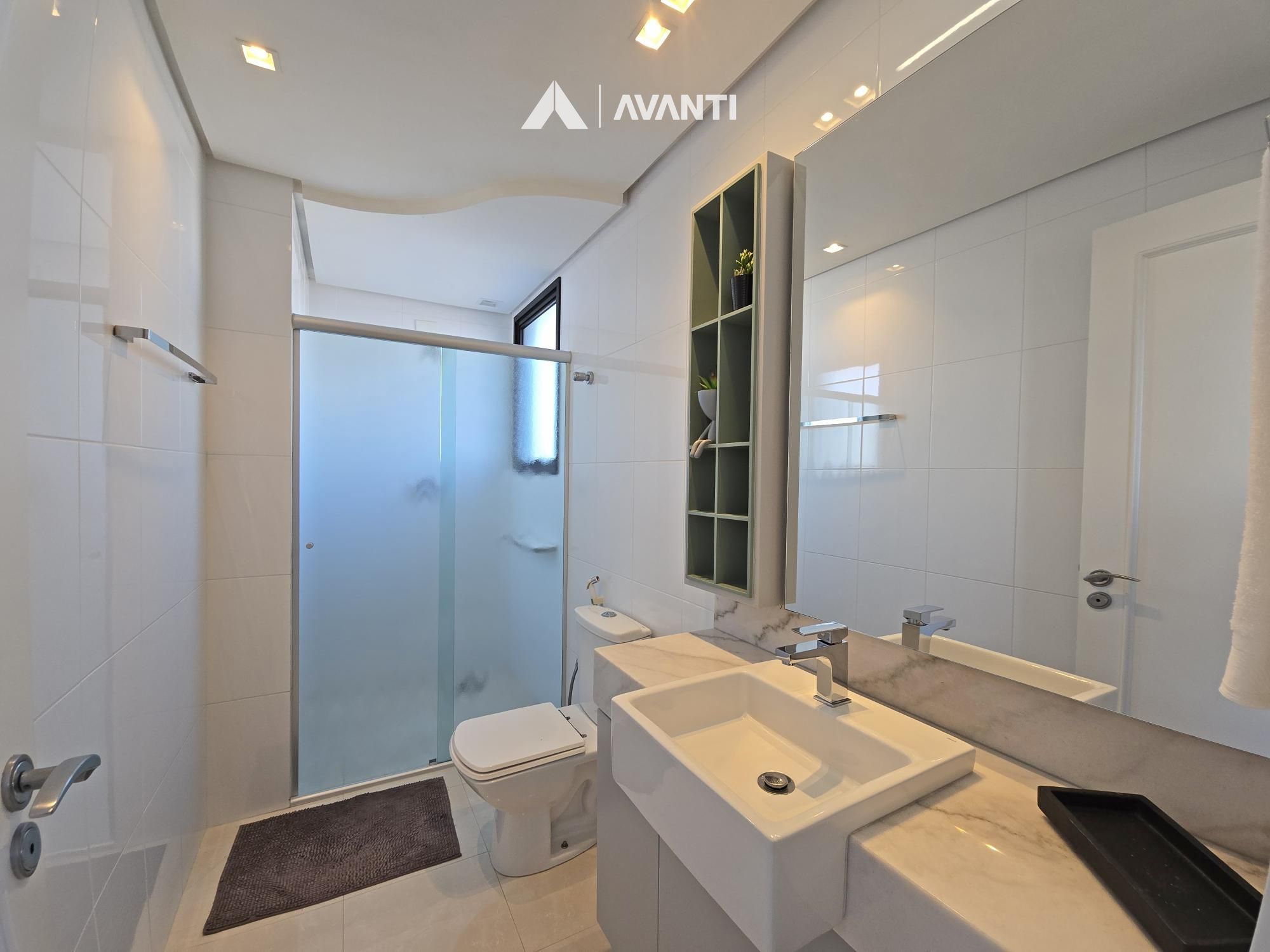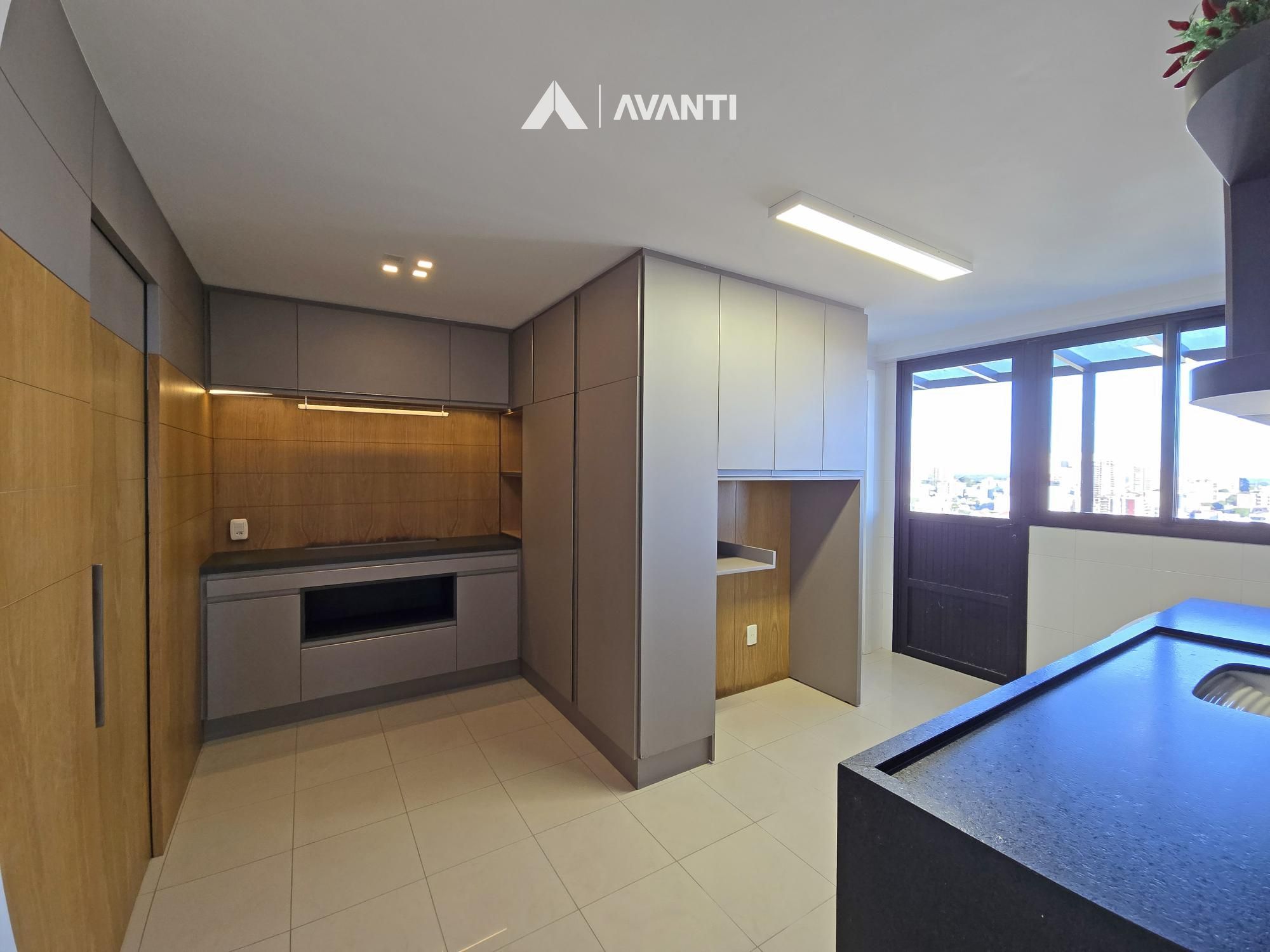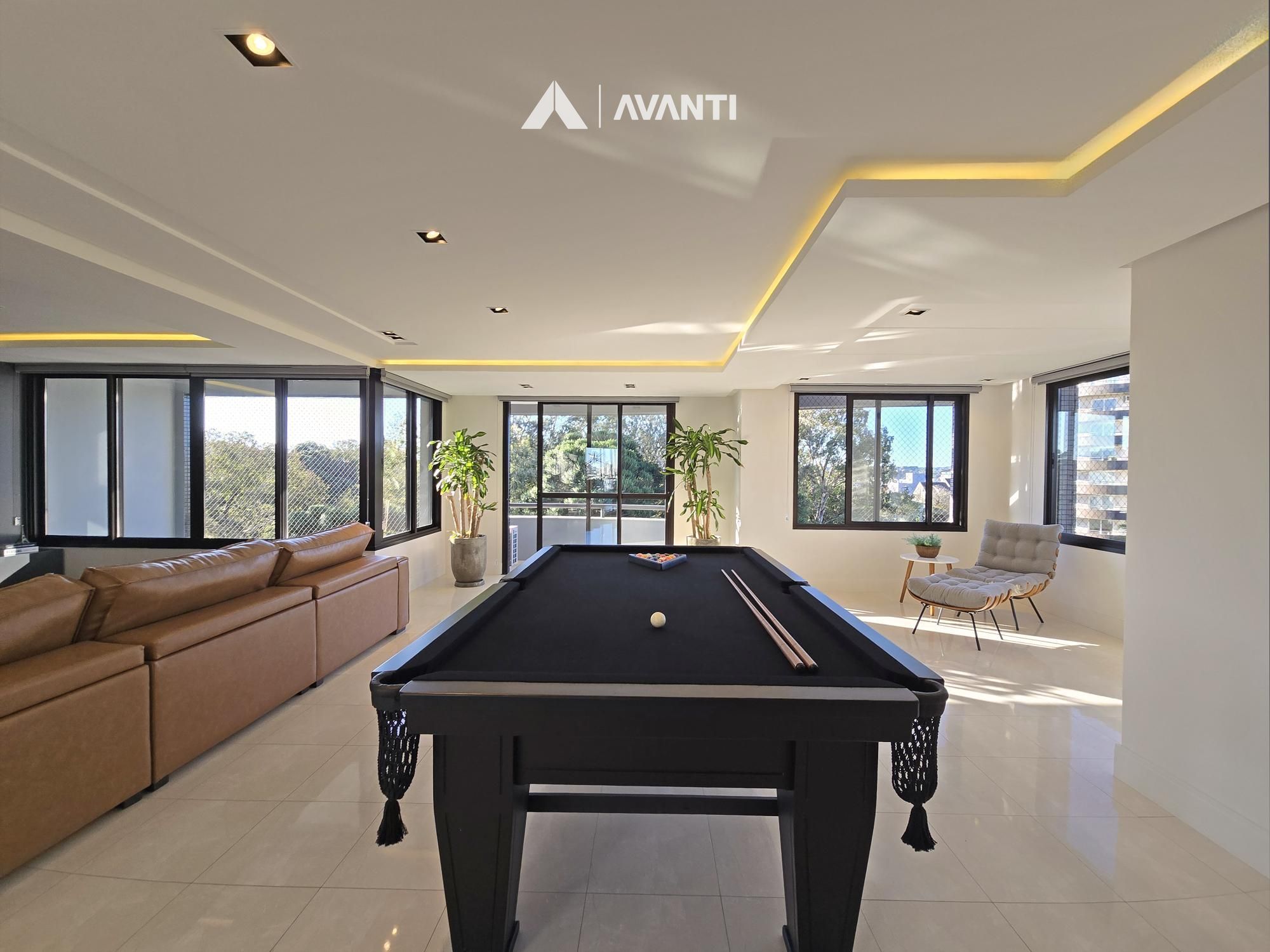 Sala de jantar com sacada, sala de estar, sala TV integrada a sala de jogos, sacada, cozinha gourmet e ampla área de serviço com banheiro e sacada auxiliar.