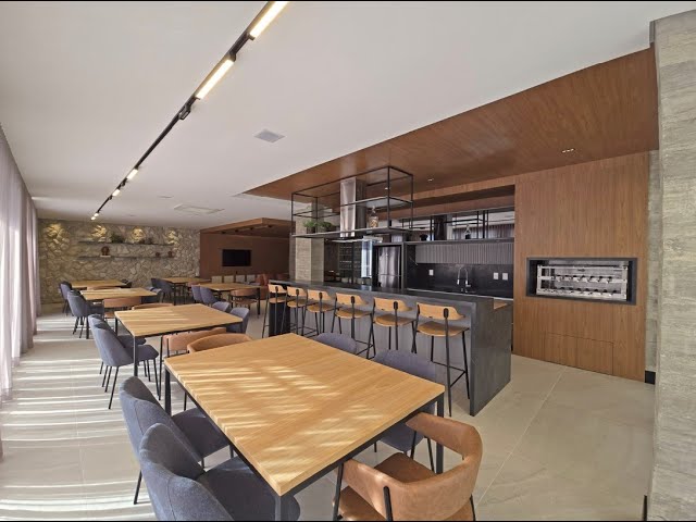 Hall de entrada privativo, lavabo, imponente living em conceito aberto que comporta estar, jantar e cozinha. Amplas aberturas que garantem ótima iluminação natural e acesso para sacada com churrasqueira. Área de serviço com sacada auxiliar.