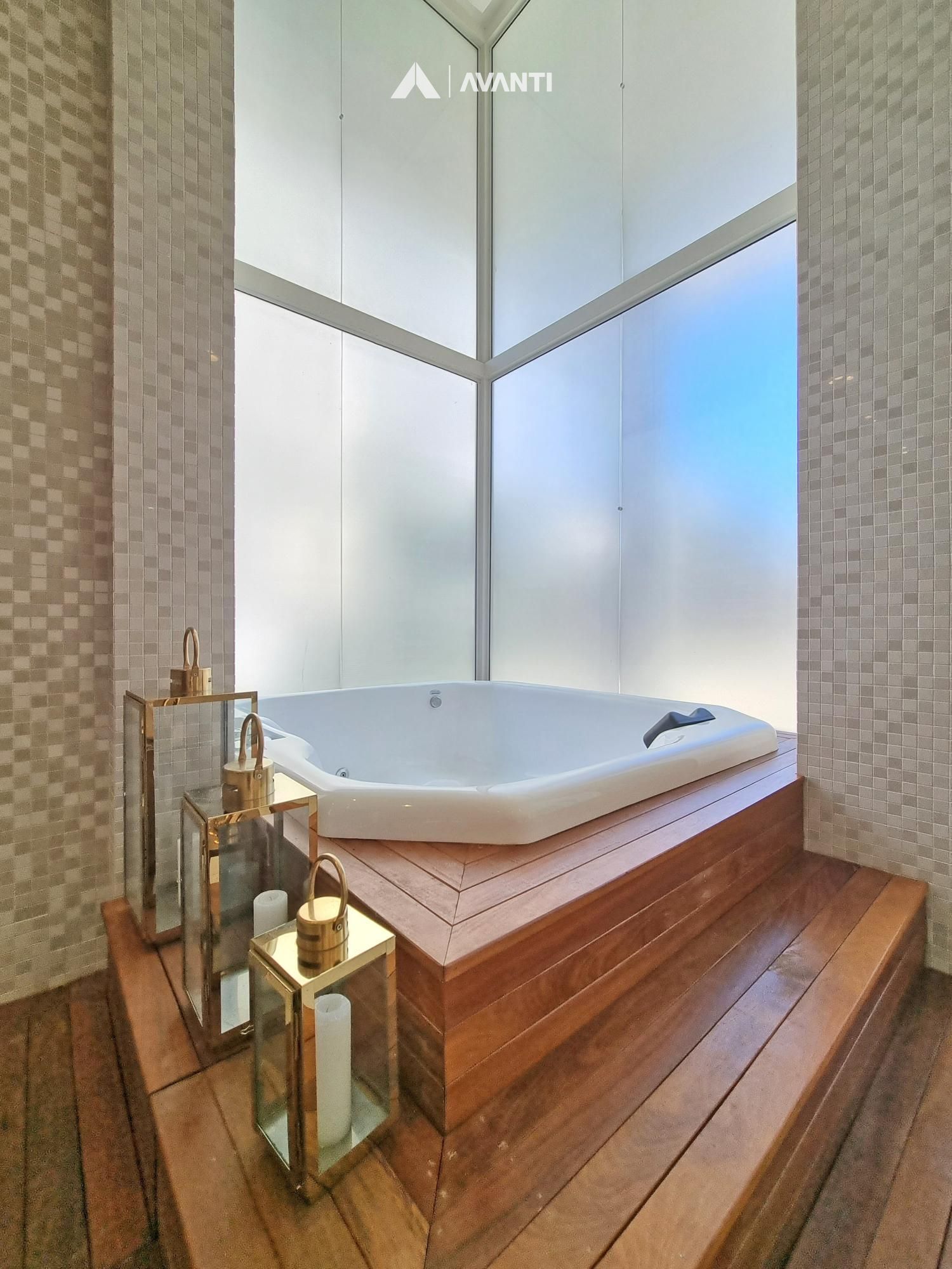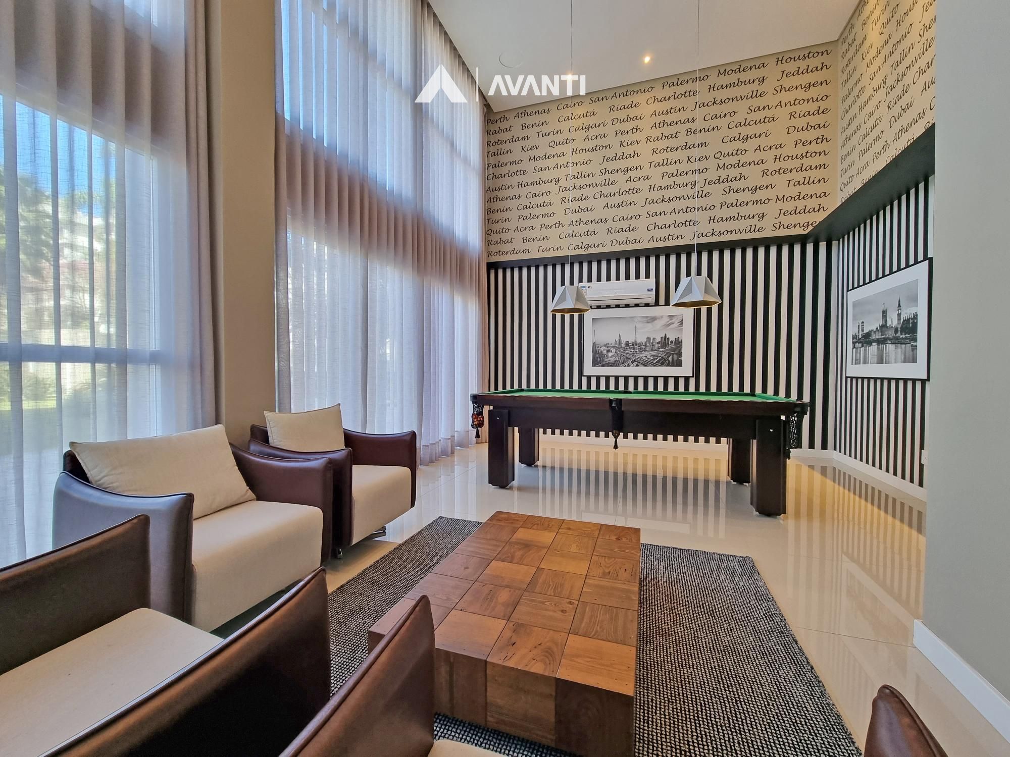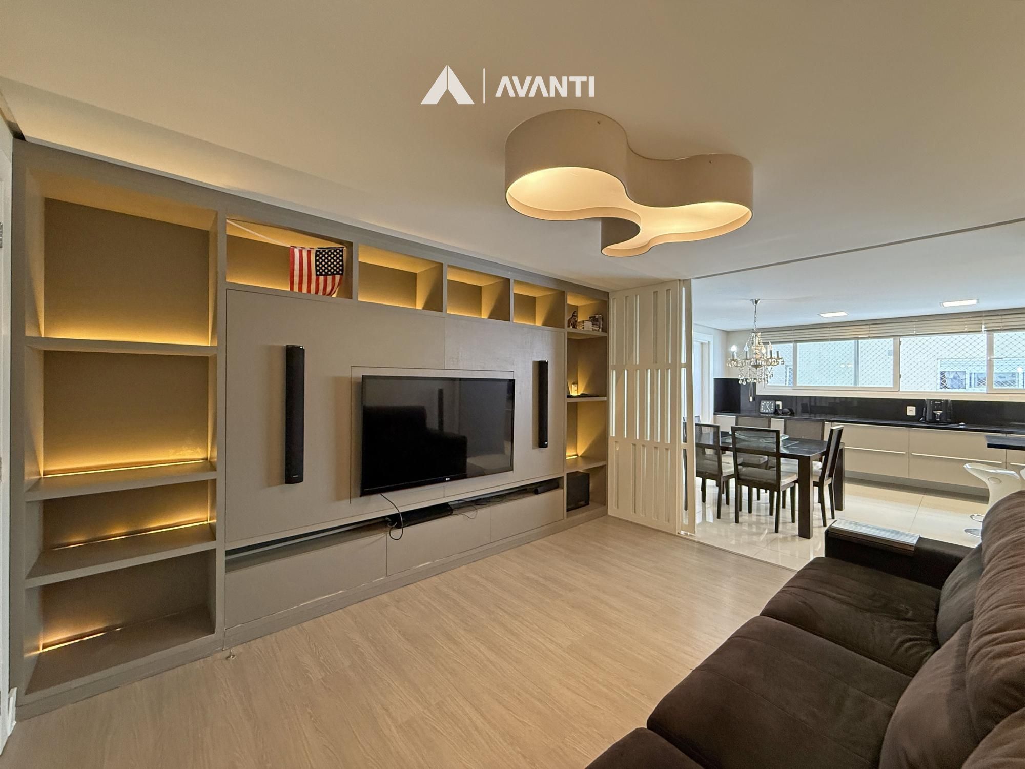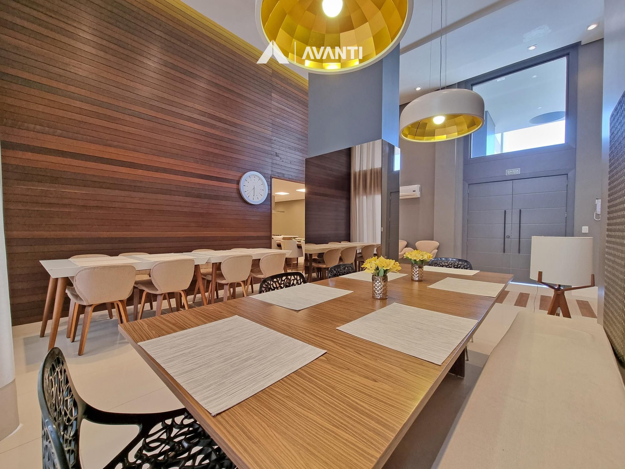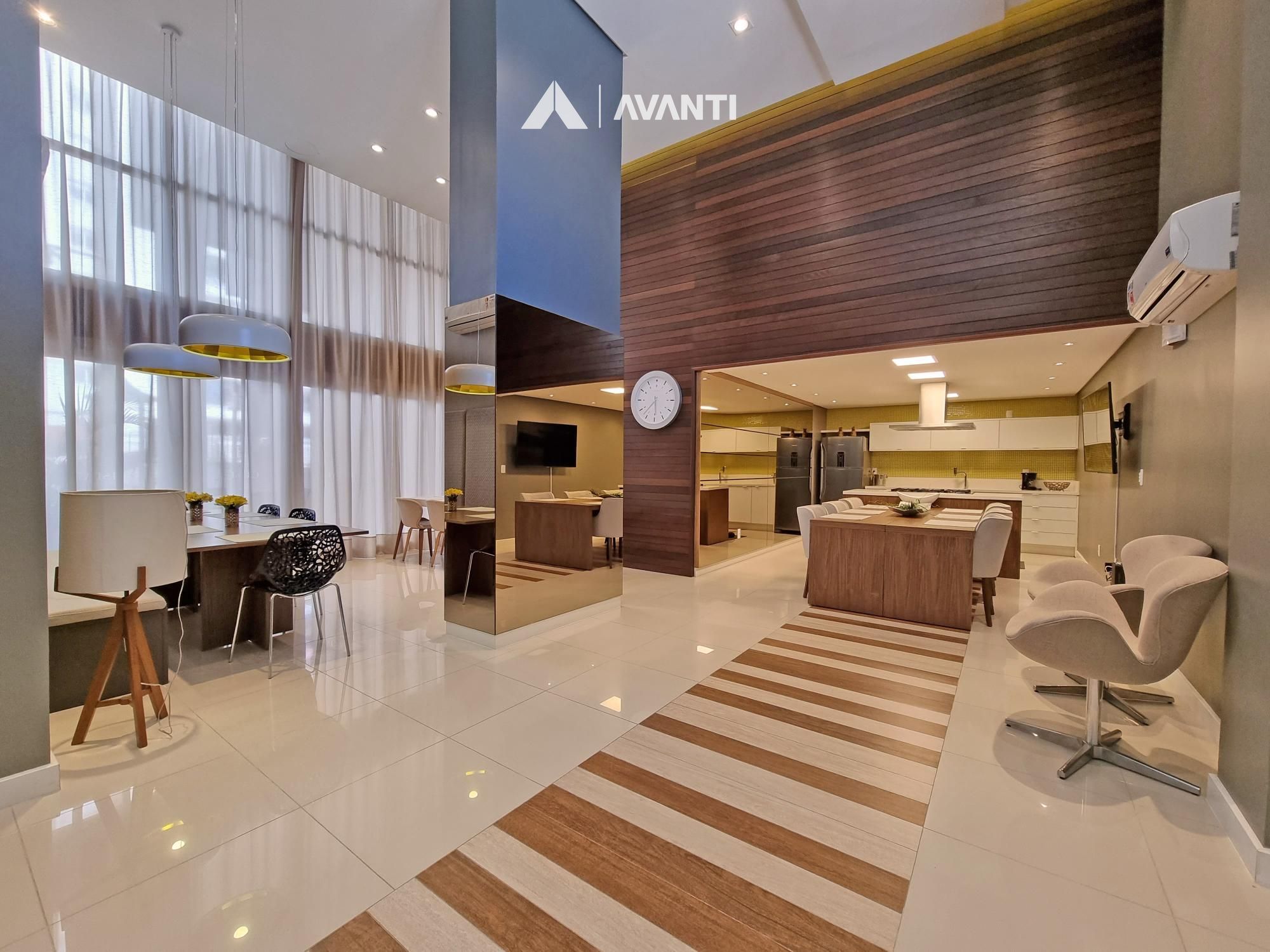 Composto por grandioso living 3 ambientes, dispõe de pé direito duplo com lareira e biblioteca, sala de jantar, sala de estar, cozinha americana com churrasqueira, sala TV, lavabo, área de serviço com dependência e banheiro auxiliar.